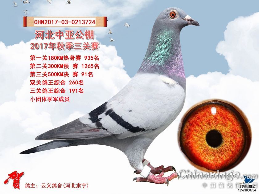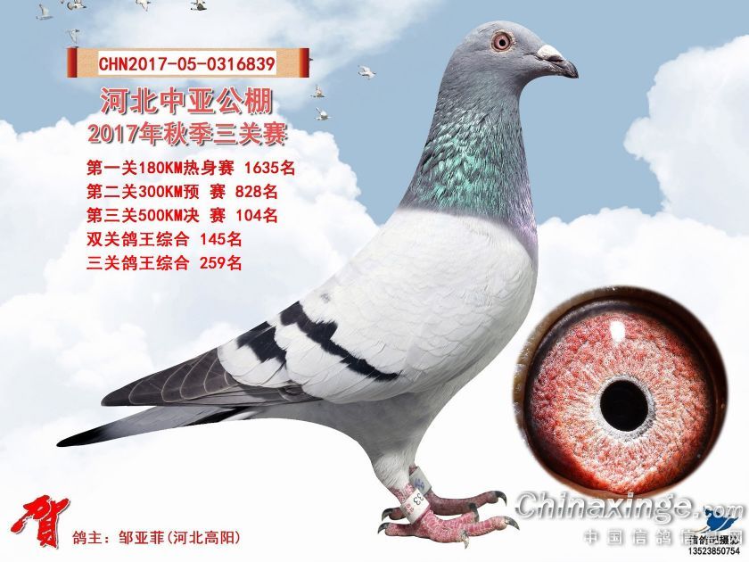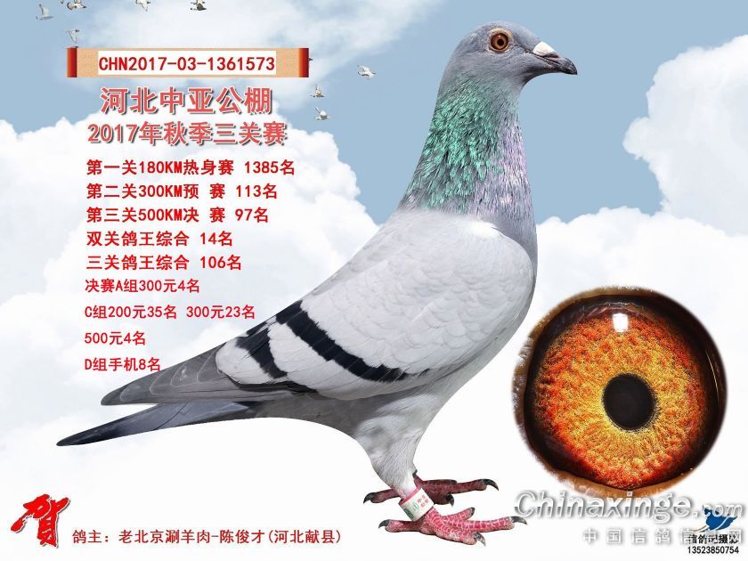 河北中亚公棚2017年秋季三关赛获奖鸽照片91-120名