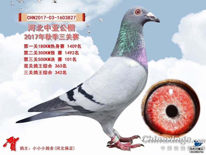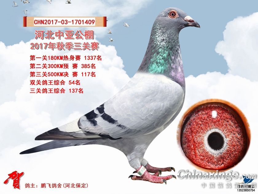 作品说明: 河北中亚公棚2017年秋季三关赛获奖鸽照片91-120名