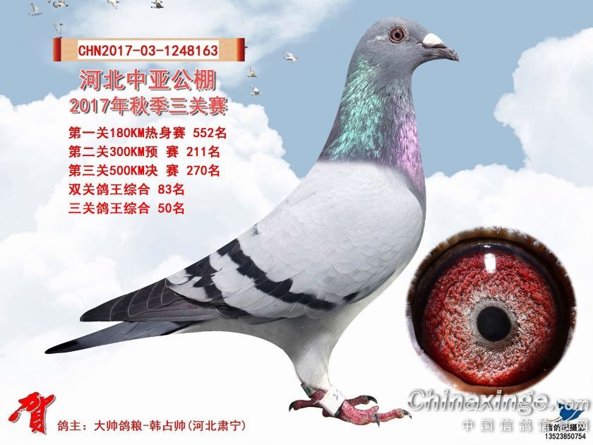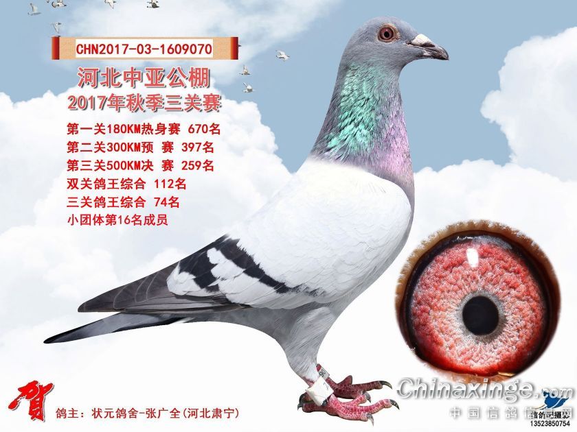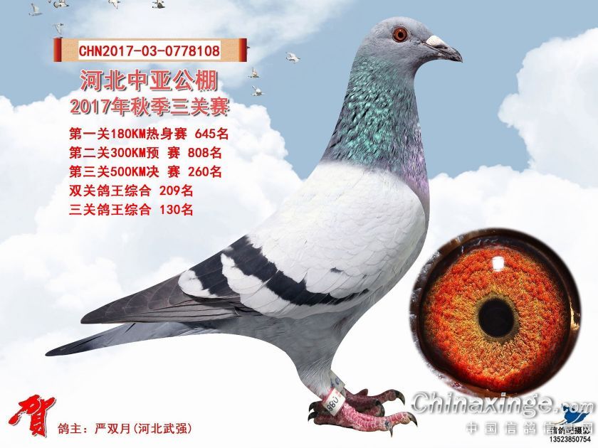 河北中亚公棚2017年秋季三关赛获奖鸽照片241-270名