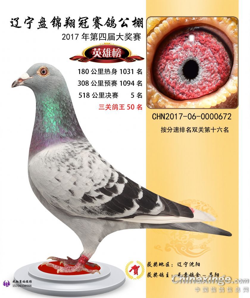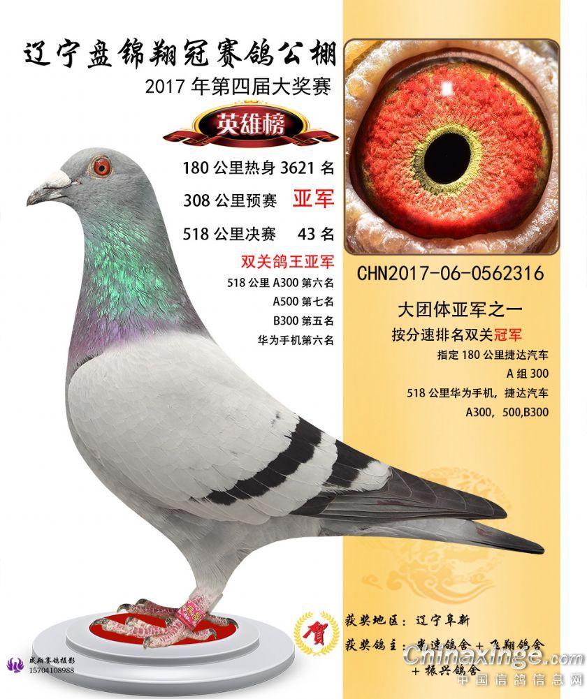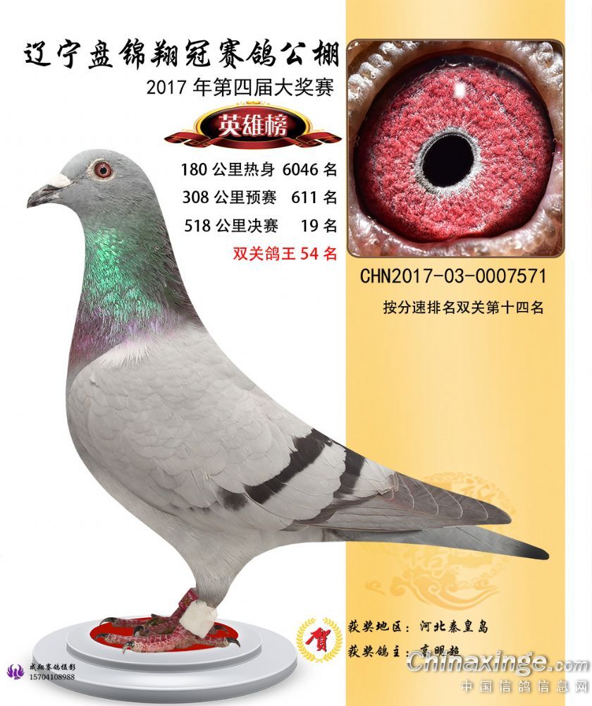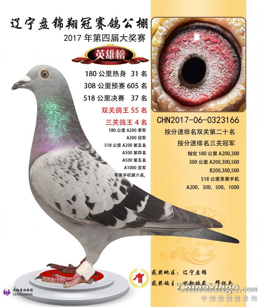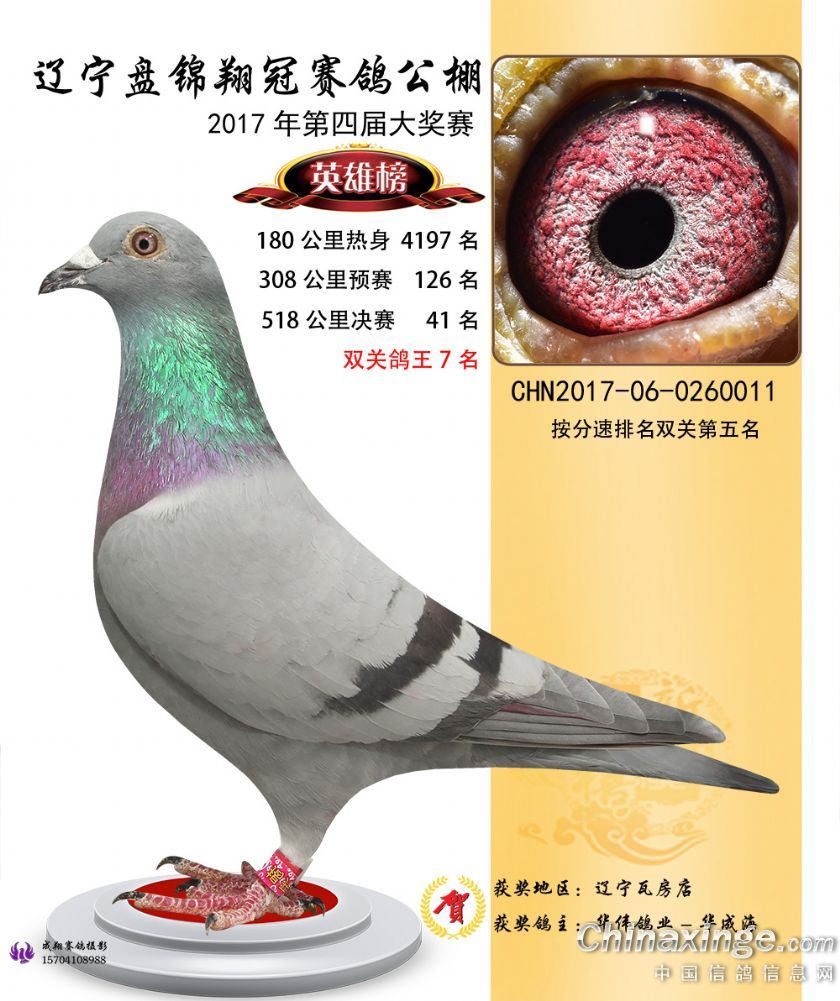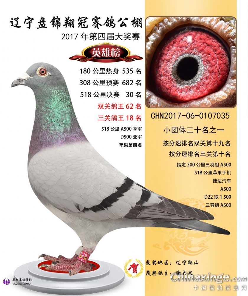 辽宁盘锦翔冠公棚2017年获奖鸽展示(1-50名)