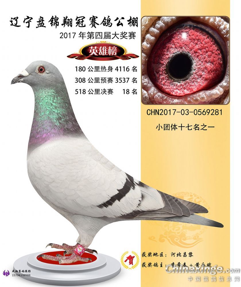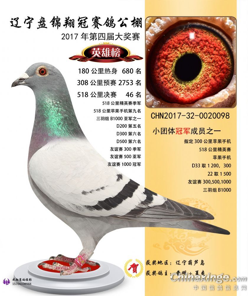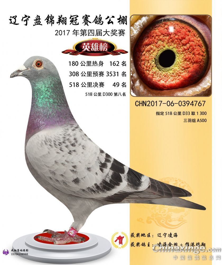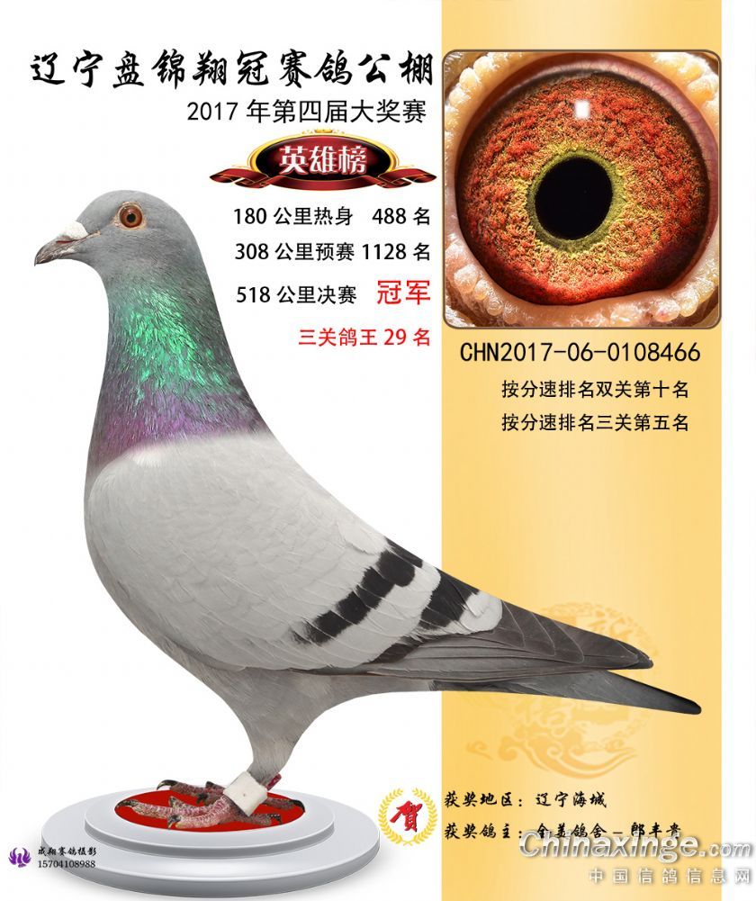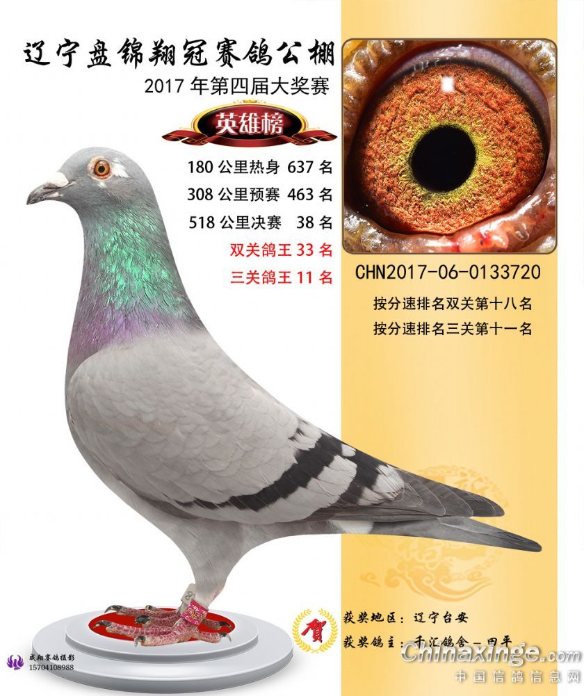 辽宁盘锦翔冠公棚2017年获奖鸽展示(1-50名)