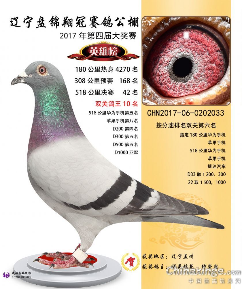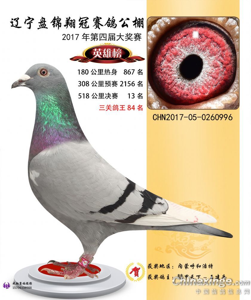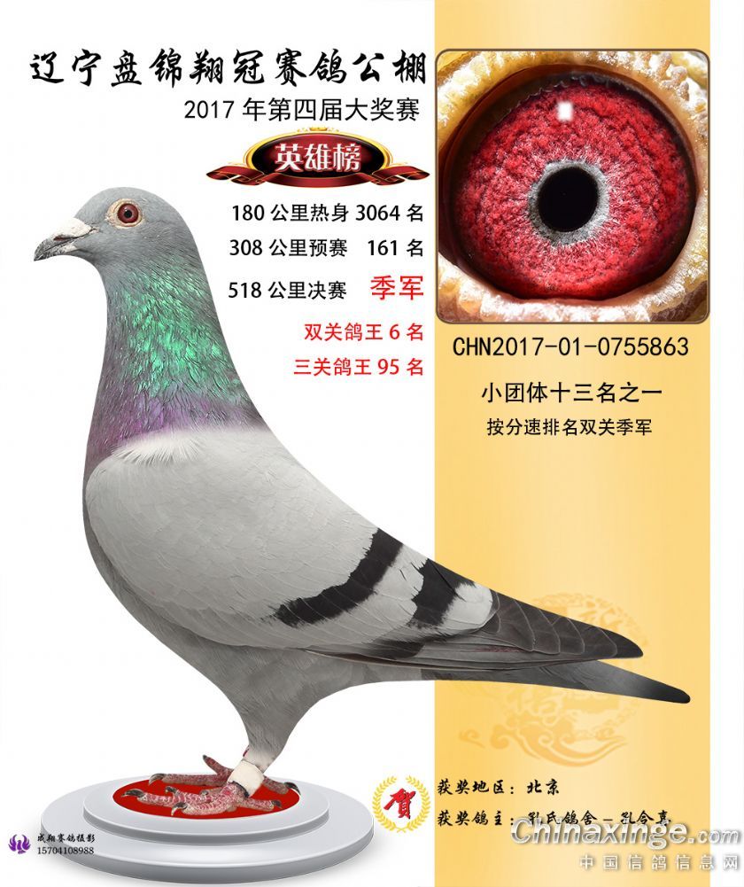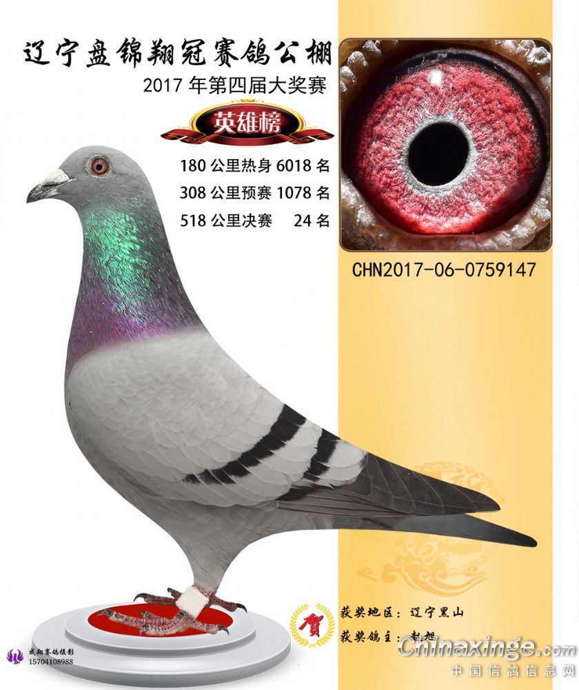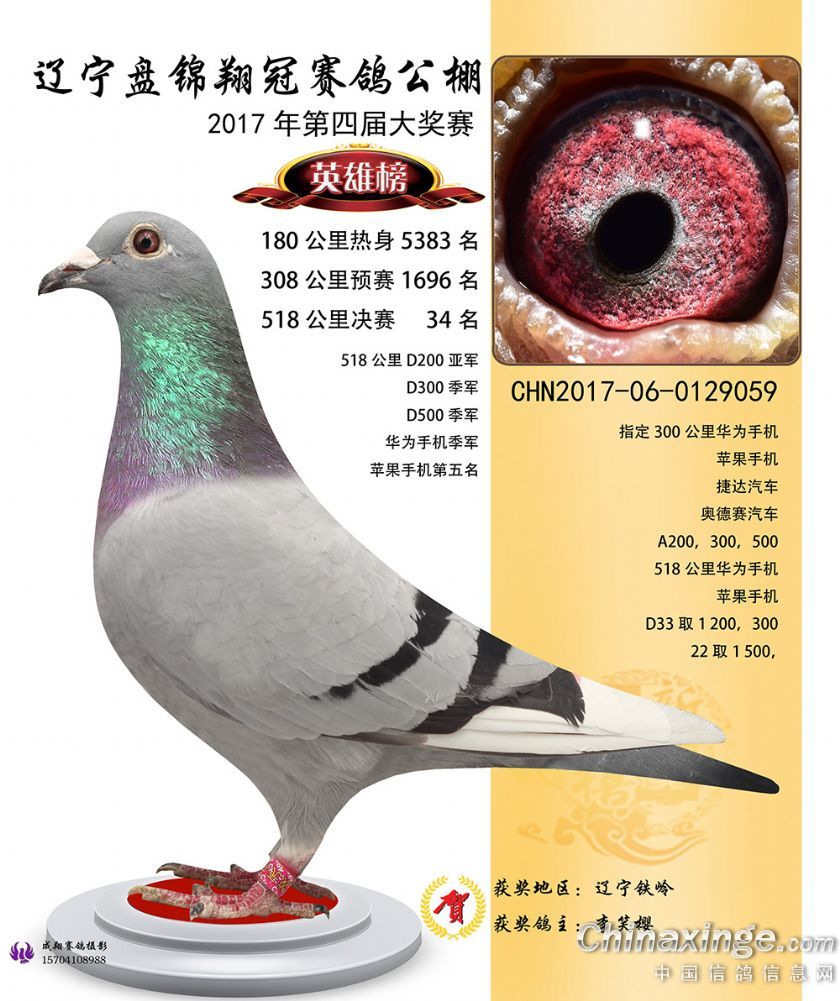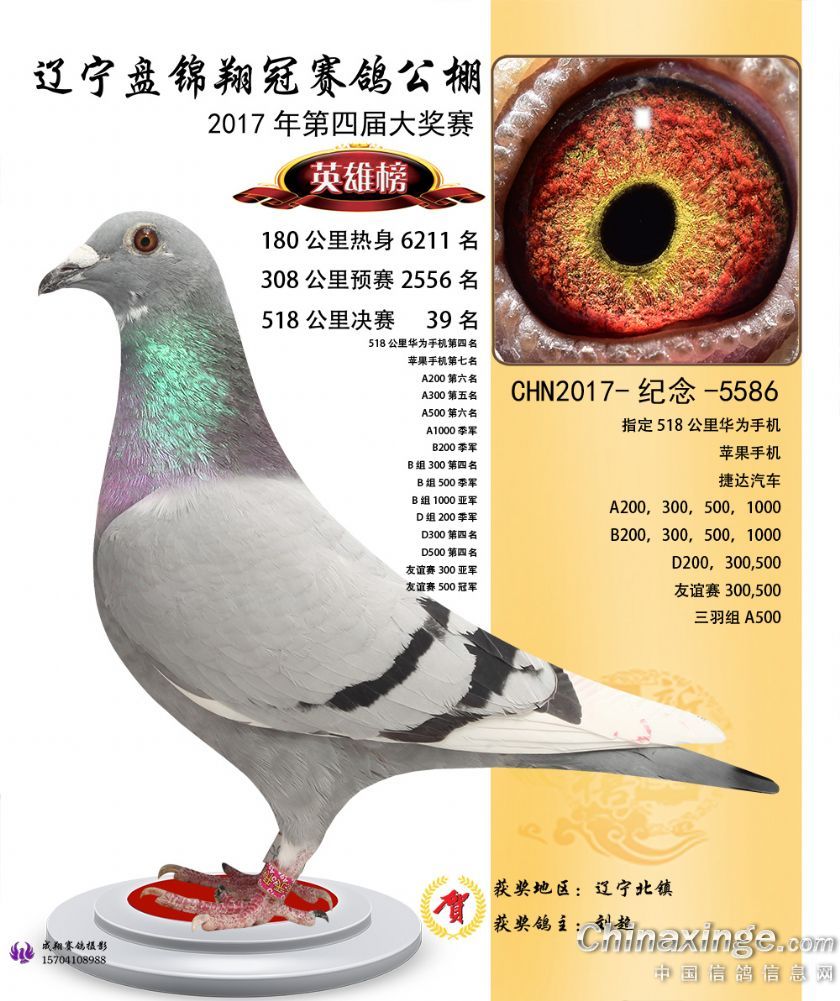 辽宁盘锦翔冠公棚2017年获奖鸽展示(1-50名)