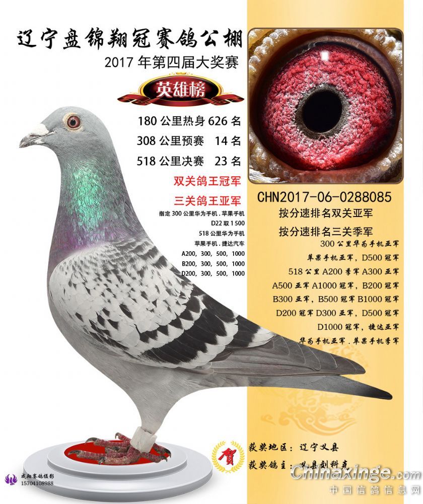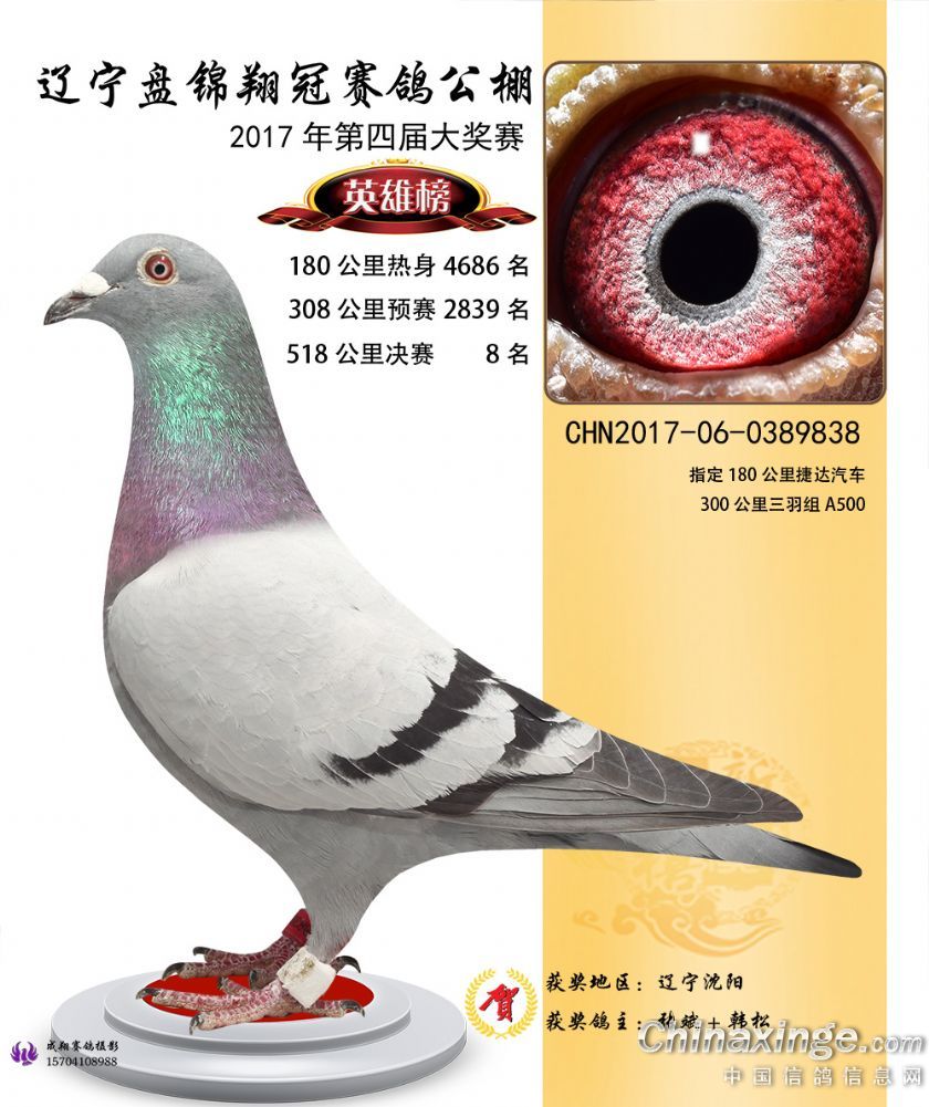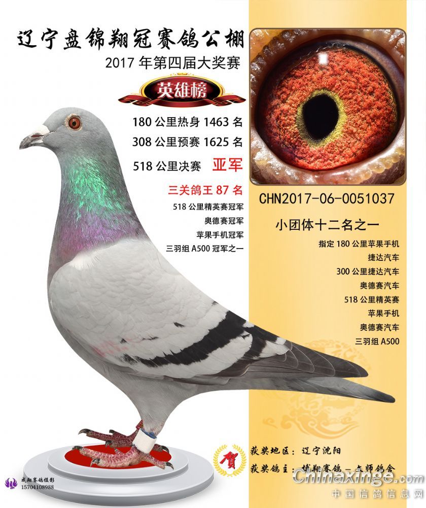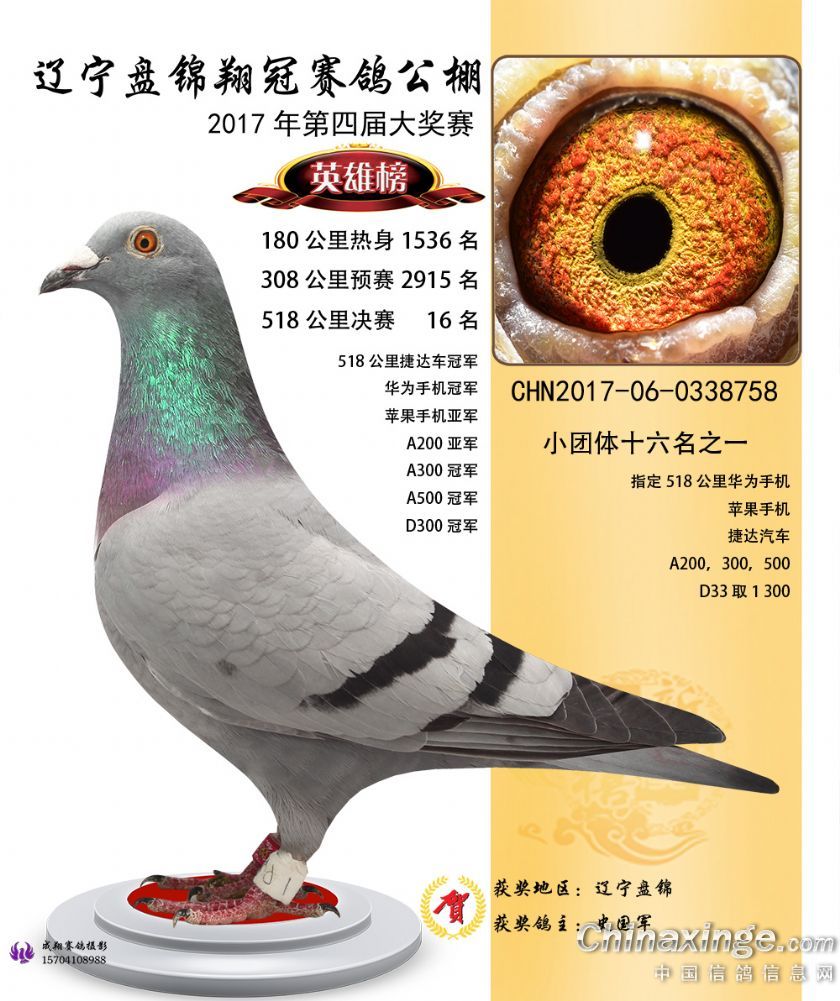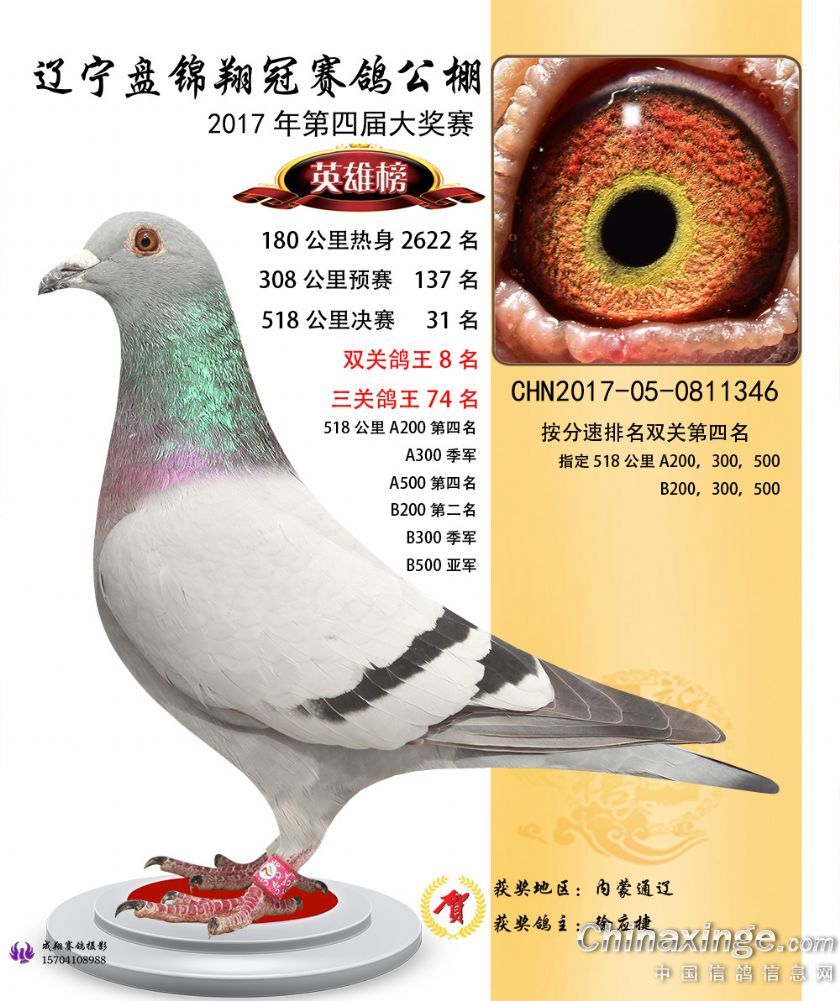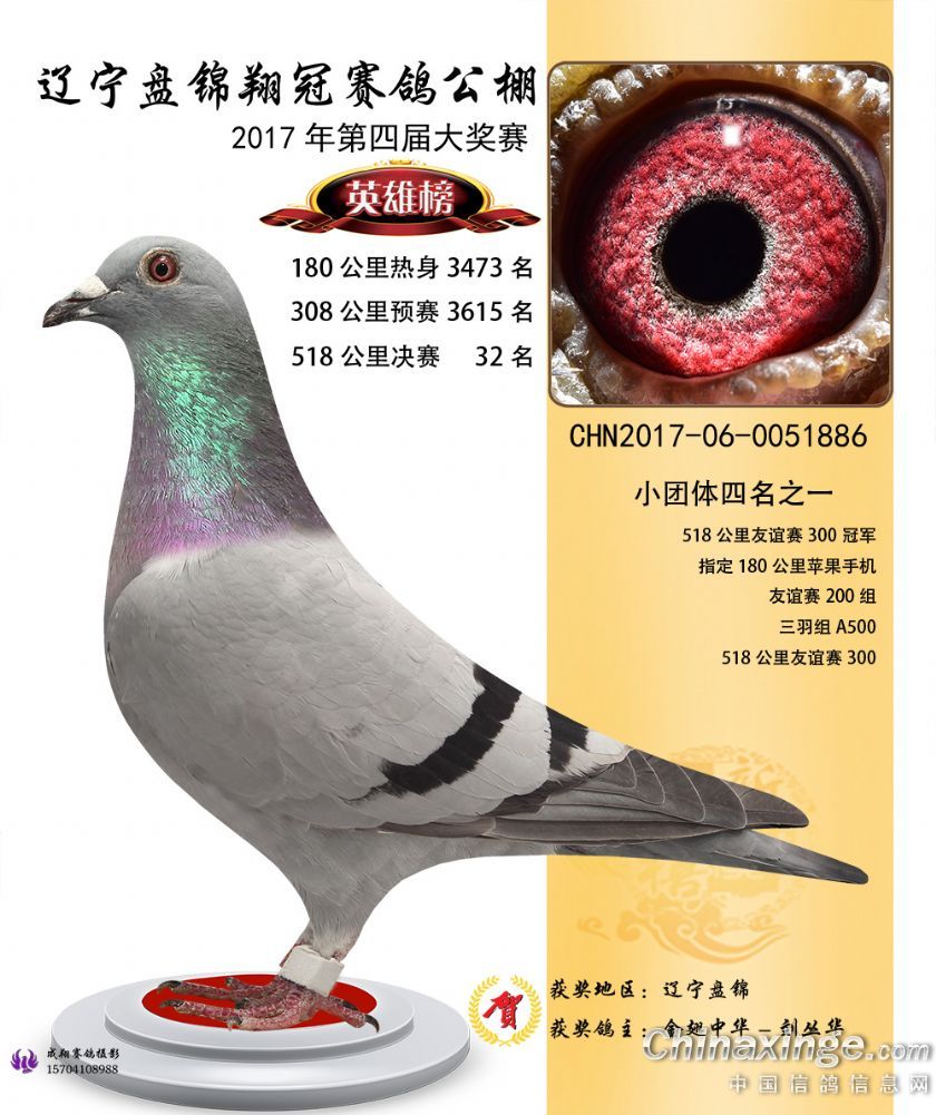 辽宁盘锦翔冠公棚2017年获奖鸽展示(1-50名)