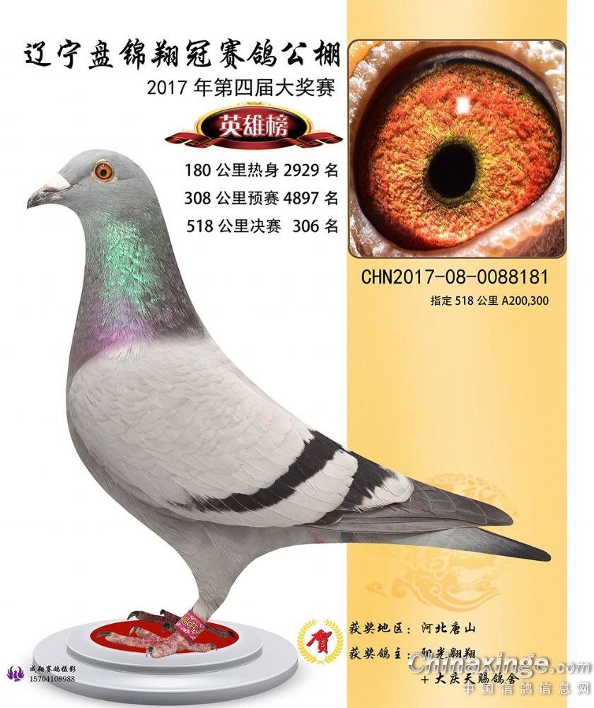 辽宁盘锦翔冠公棚2017年获奖鸽展示(301-350)