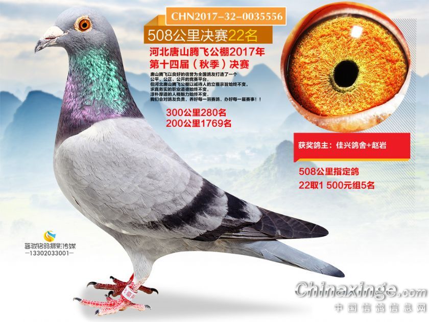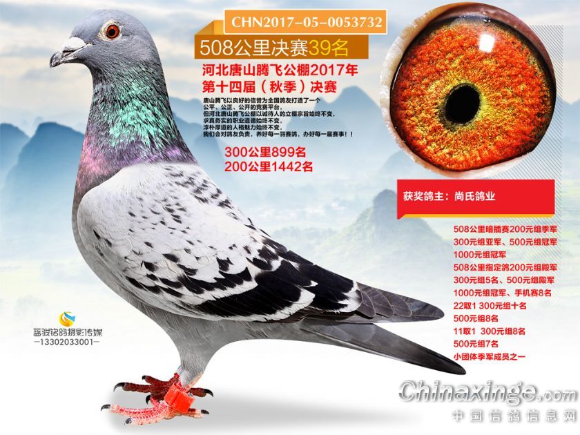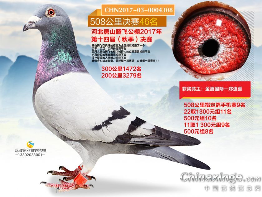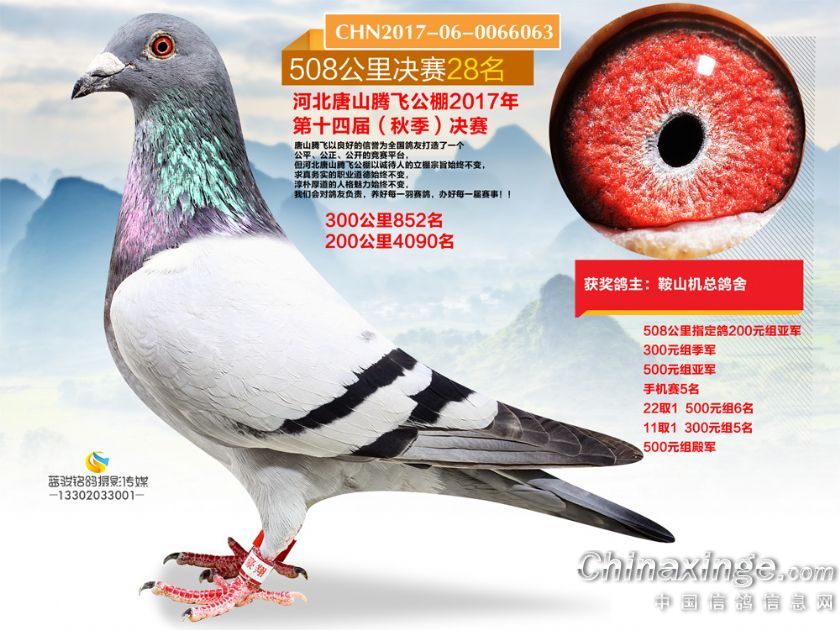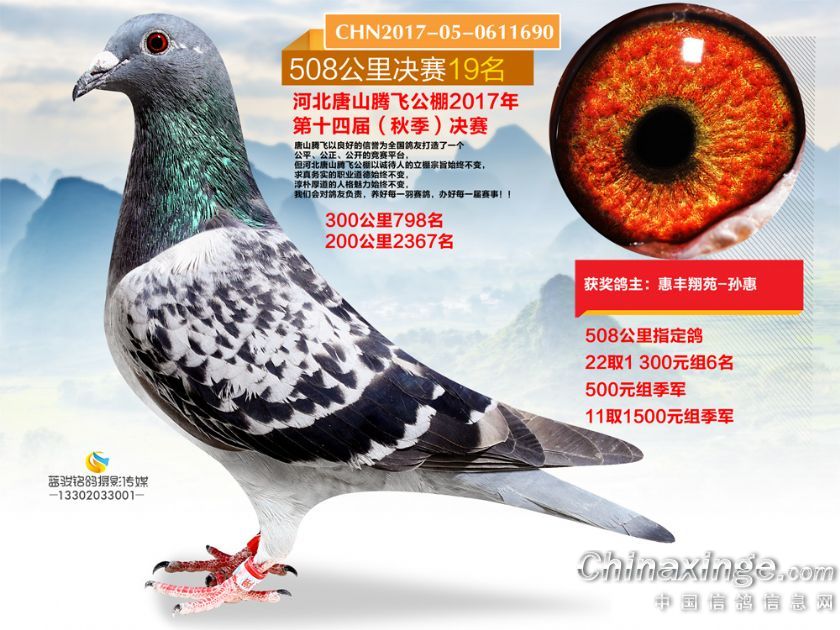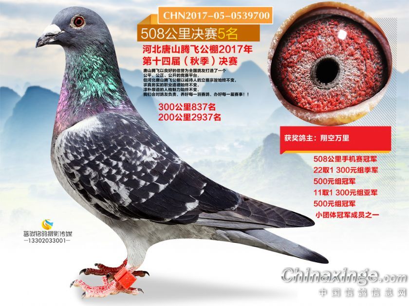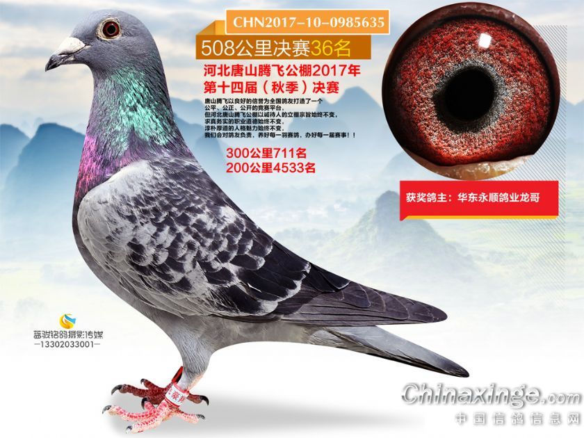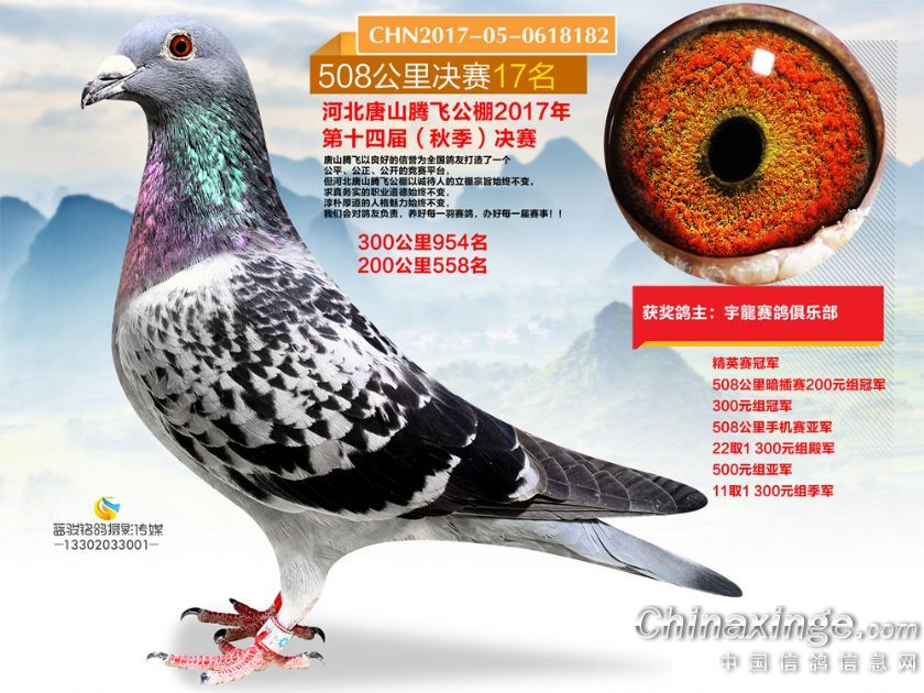作品说明: 河北唐山腾飞公棚2017年508公里获奖鸽1览