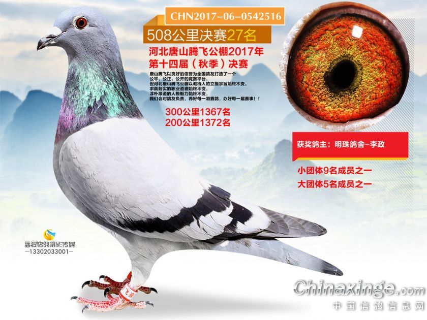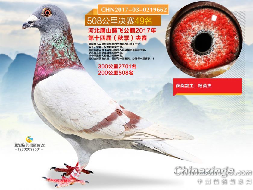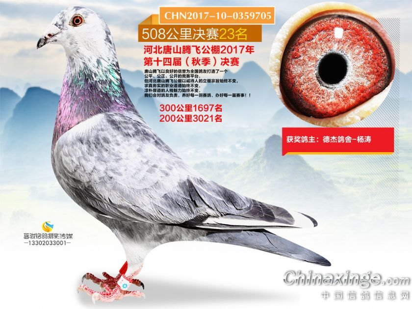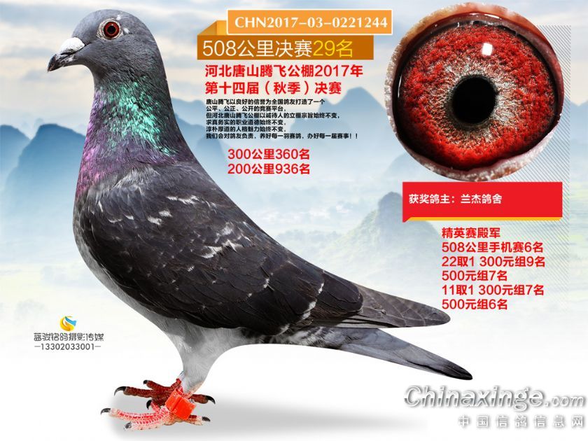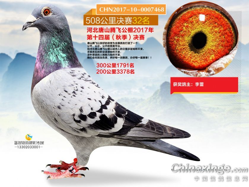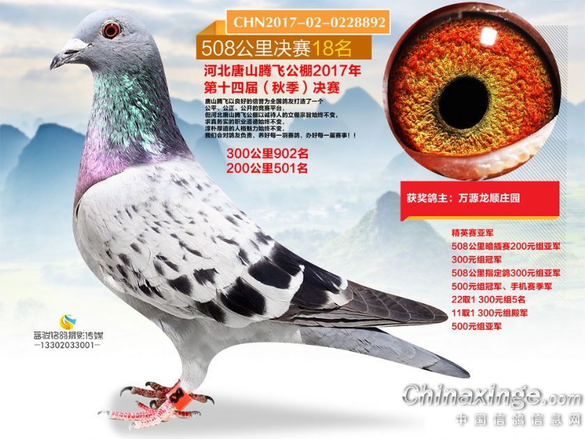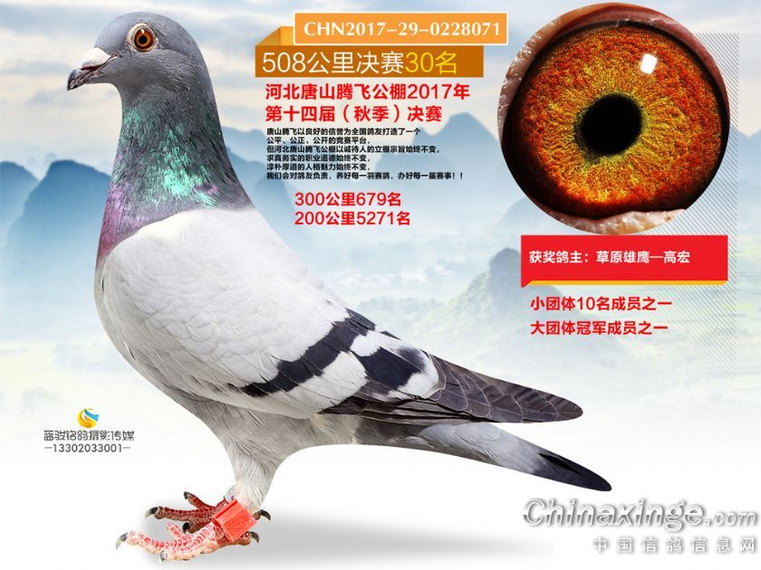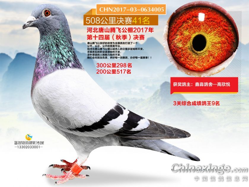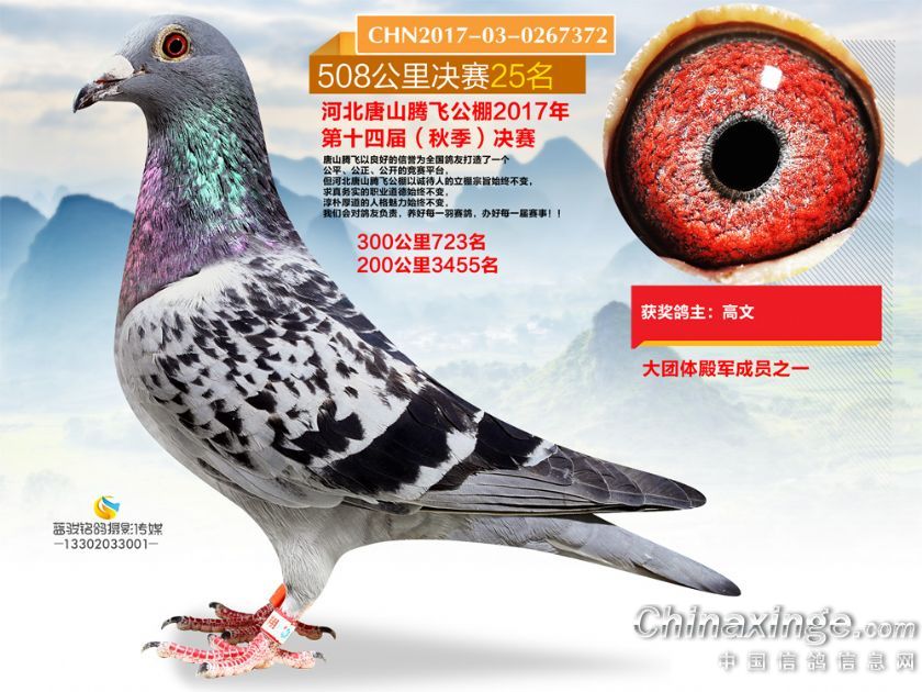 作品说明: 河北唐山腾飞公棚2017年508公里获奖鸽1览