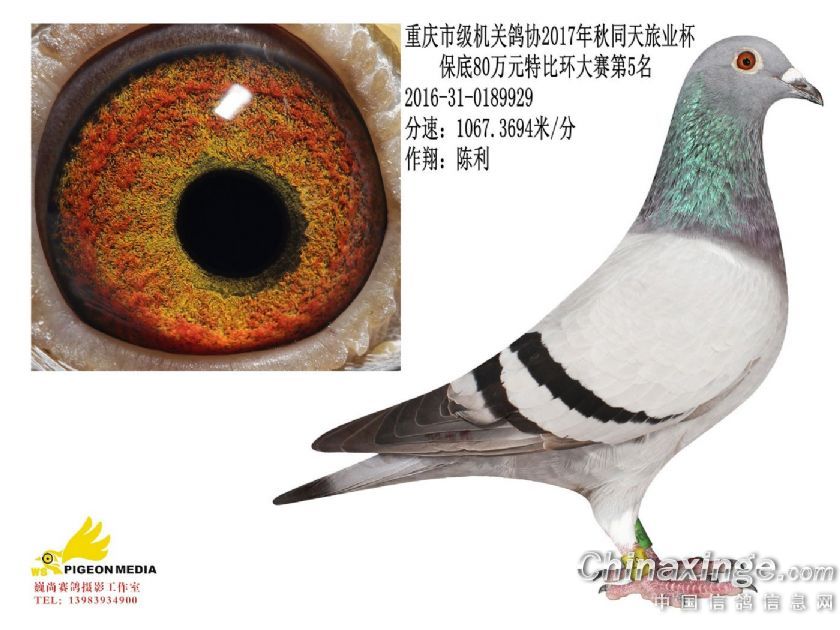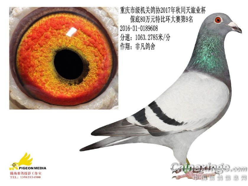 作品说明: 重庆机关同天旅业赛鸽中心2017秋保底80万元特比大赛前十名获奖鸽欣赏