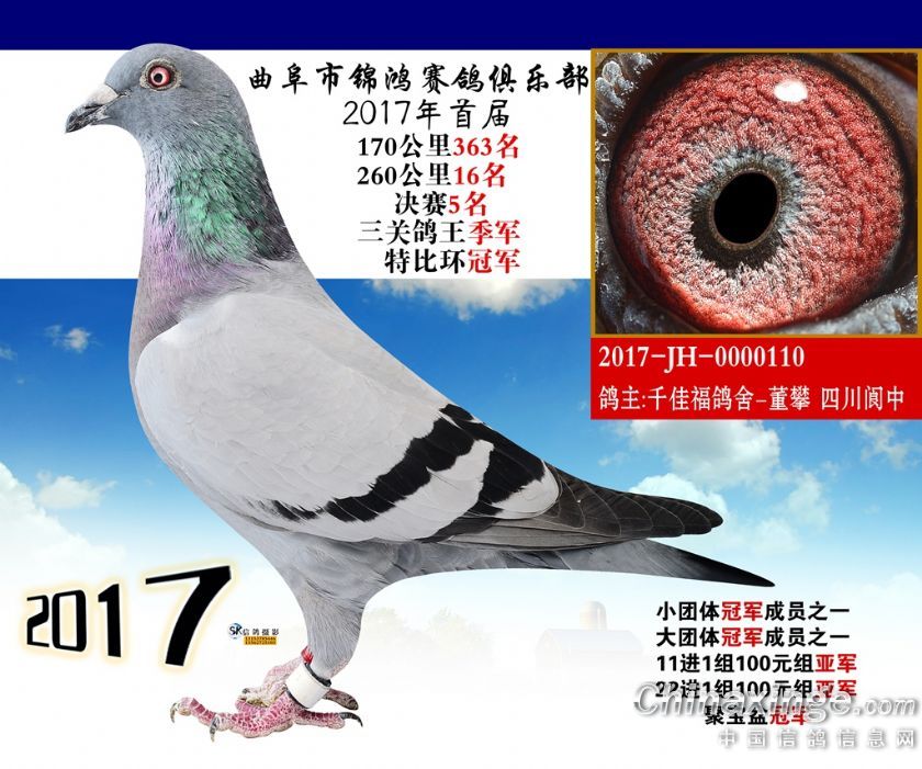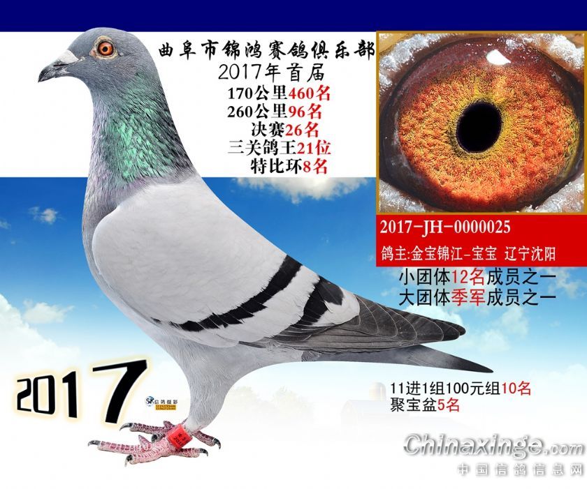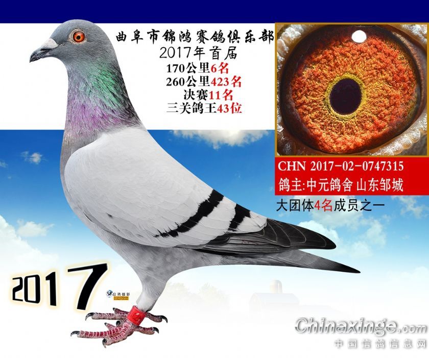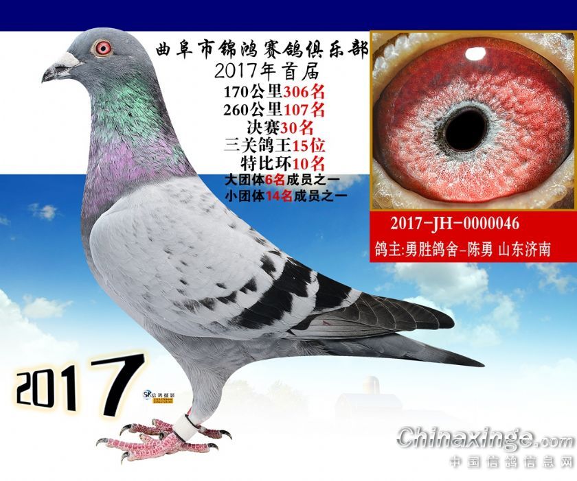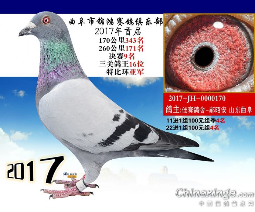 SDJHSG 原创 2017/11/6 17:33:34 曲阜市锦鸿赛鸽俱乐部获奖鸽 0 93