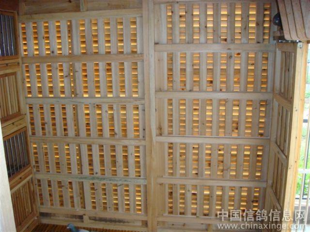 种鸽的巢箱设计得很合理,木条那边,里面较暗,正好供种鸽下蛋,不锈钢这边,比较亮,便于鸽主观察配对情况,很好,学习了,鸽舍整个用木制的,鸽子会很舒适,实用而不显庸俗。 |