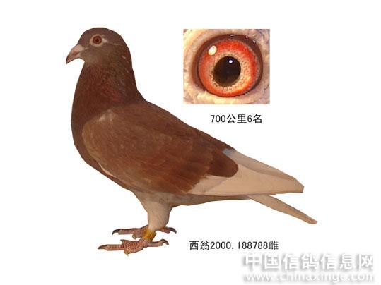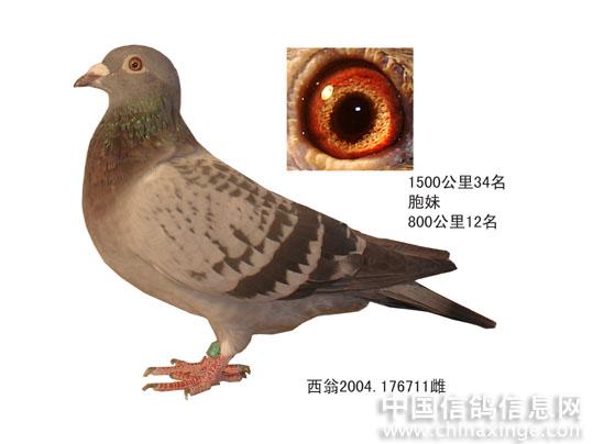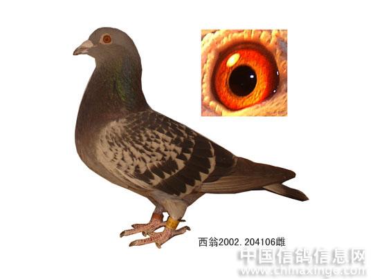 资料说原始进口西翁10羽鸽中有"格立斯"血统 那是老西翁先生最钟爱的一羽红轮老雄鸽 后代鸽的眼睛多为柿红色 眼内有黑色点粒 善于长程飞行 另外"59611号雨雌"可否是"麻雀系"的始祖呢 |