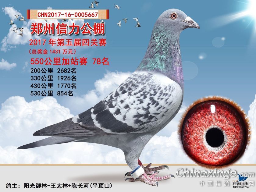 作品说明: 2017年郑州市信力公棚加站赛获奖鸽照片