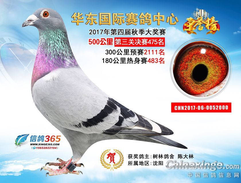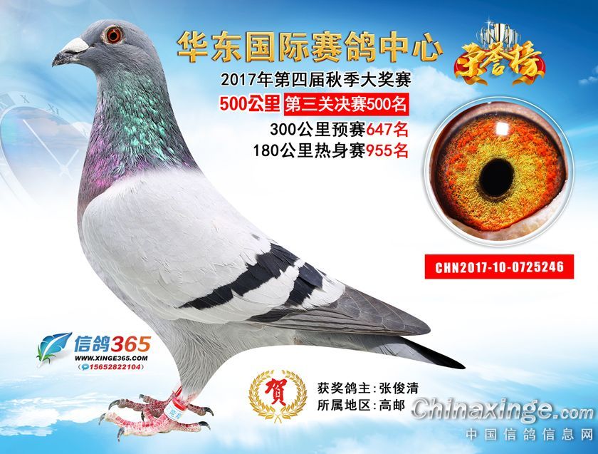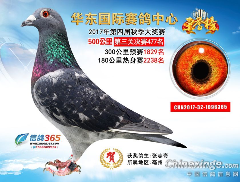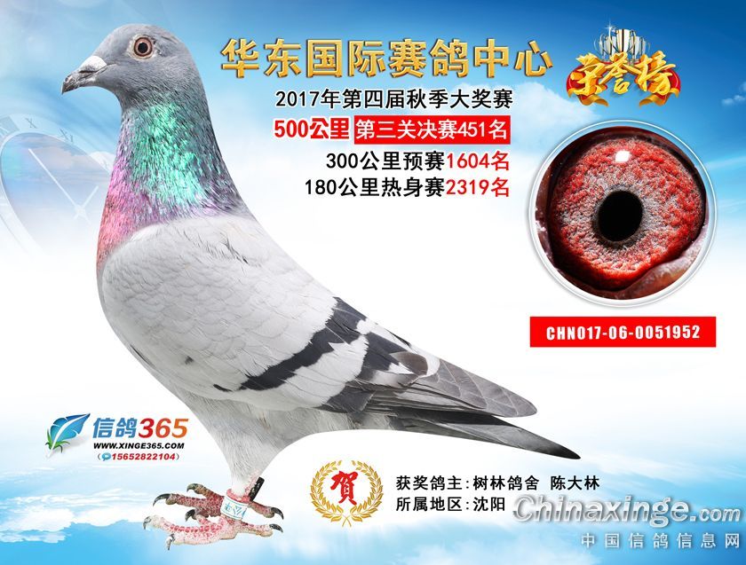 华东国际赛鸽中心2017年获奖鸽451-500名