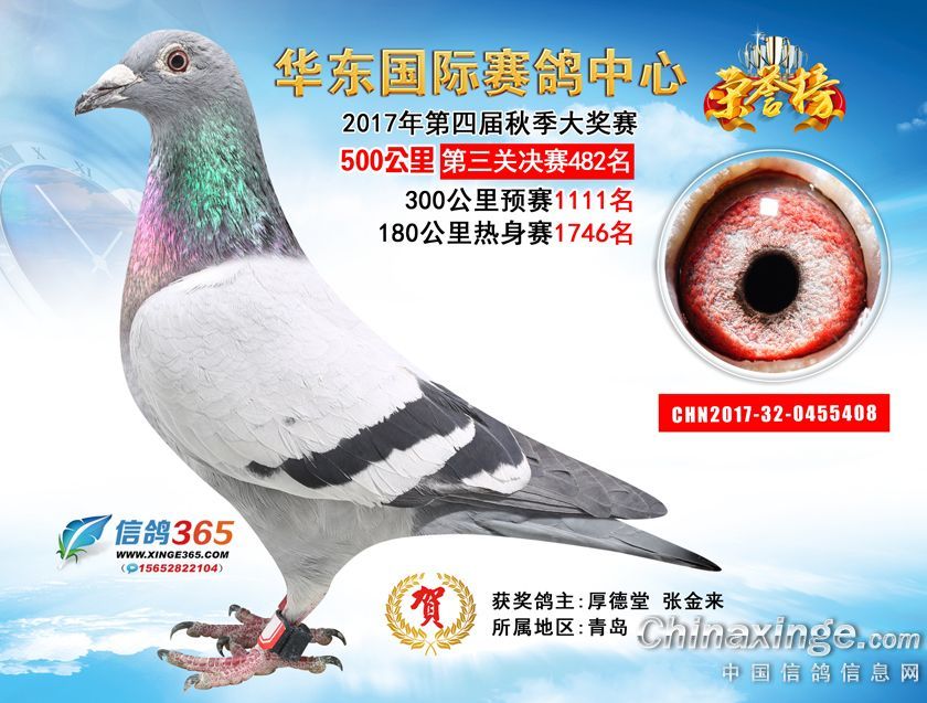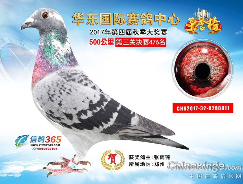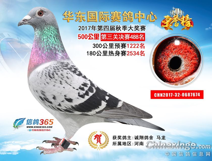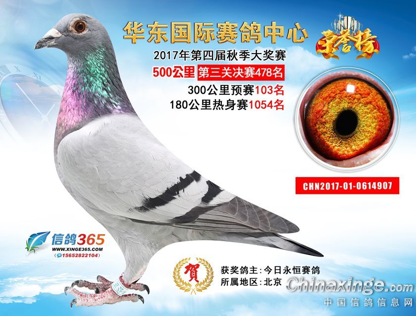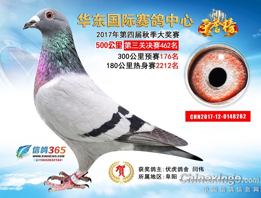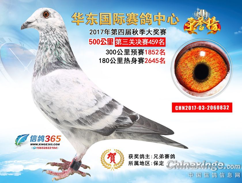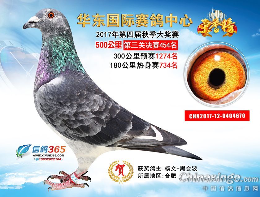 作品说明: 华东国际赛鸽中心2017年获奖鸽451-500名