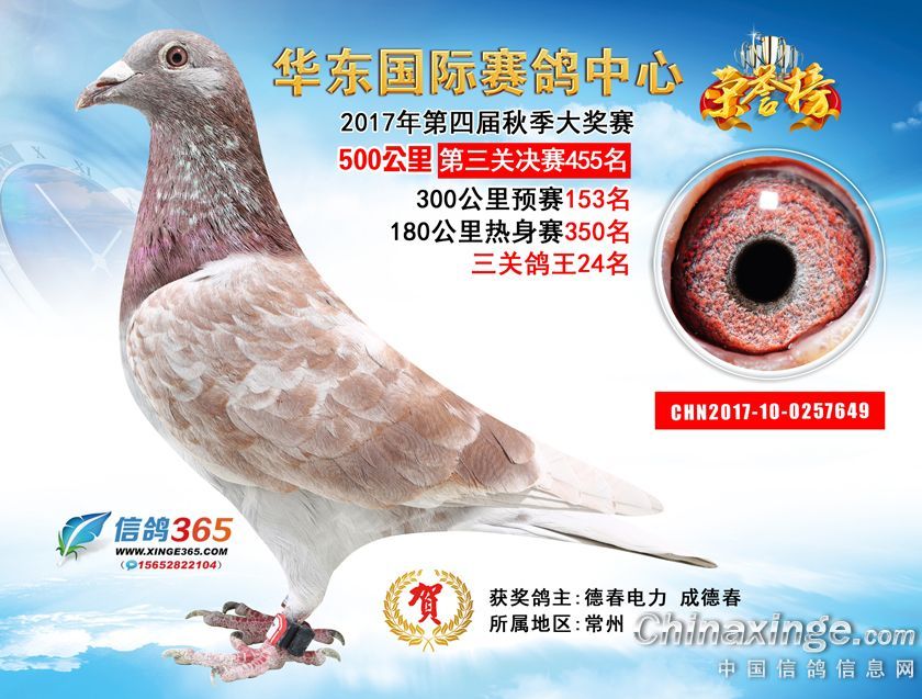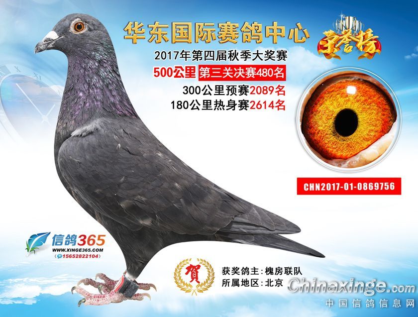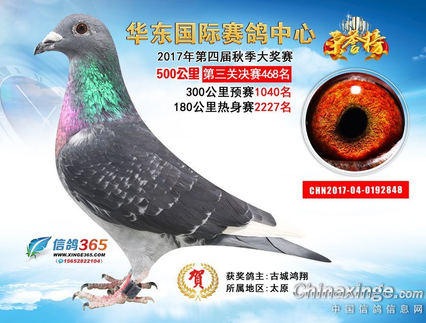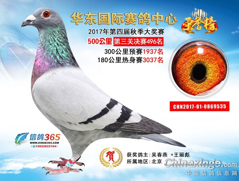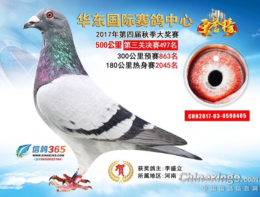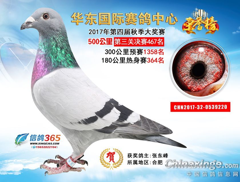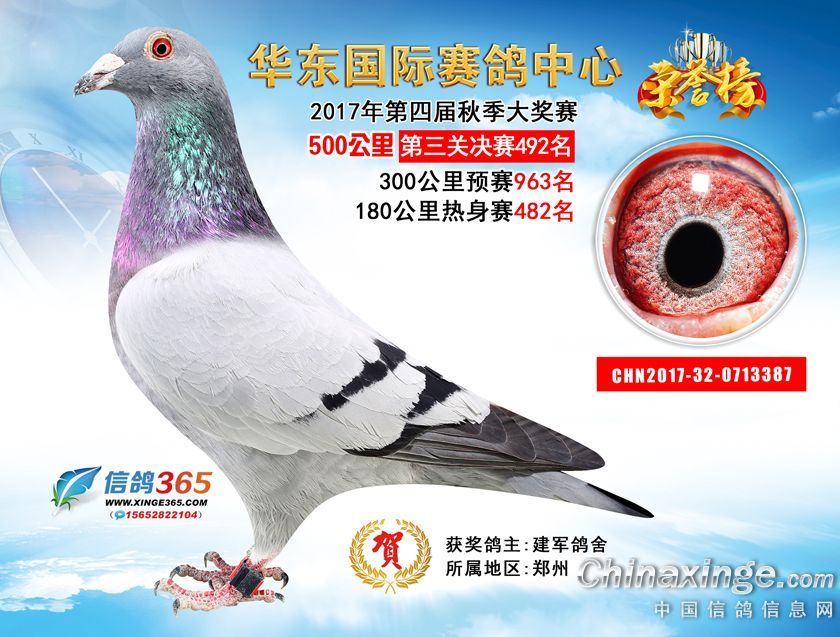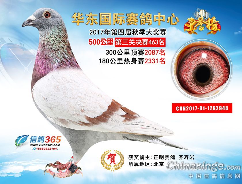 作品说明: 华东国际赛鸽中心2017年获奖鸽451-500名