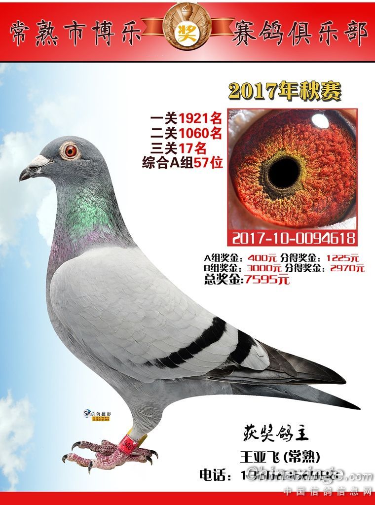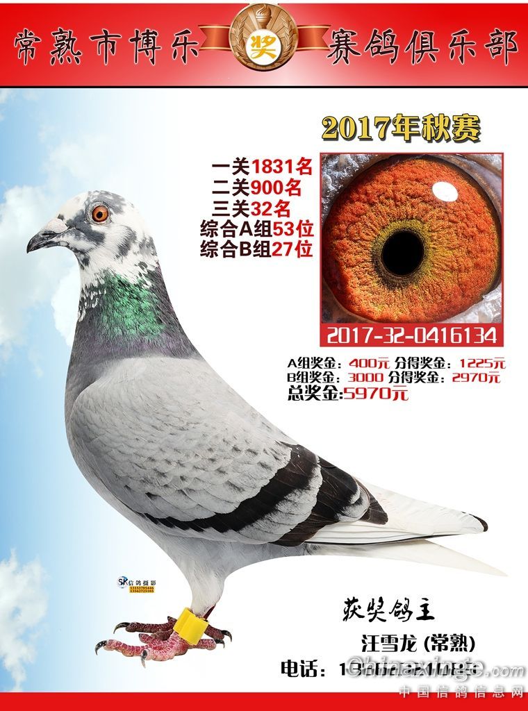 江苏常熟市博乐赛鸽俱乐部综合41-62名获奖