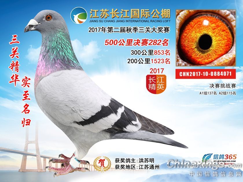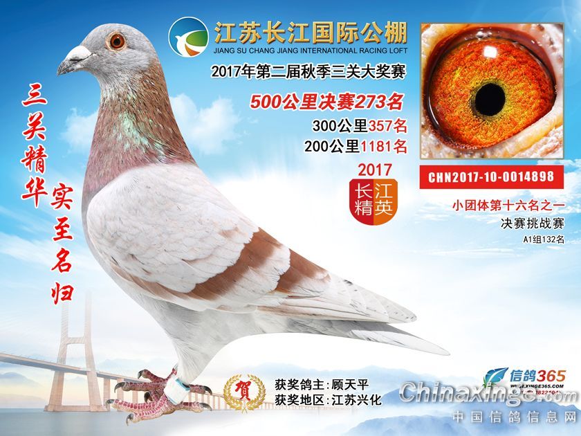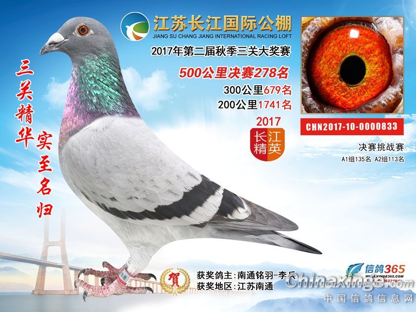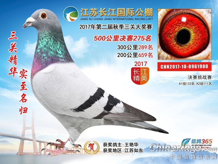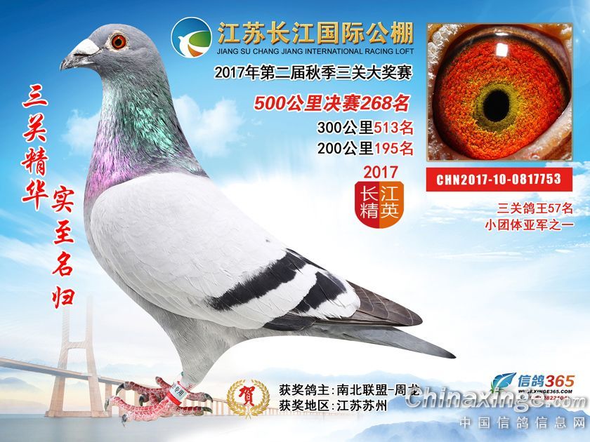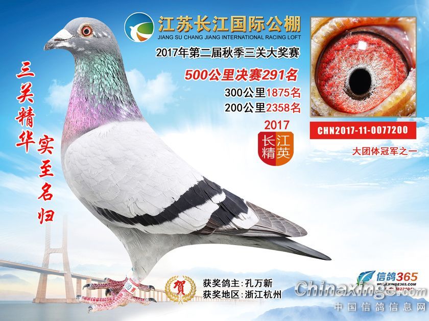作品说明: 江苏长江国际公棚2017年获奖鸽251-300名