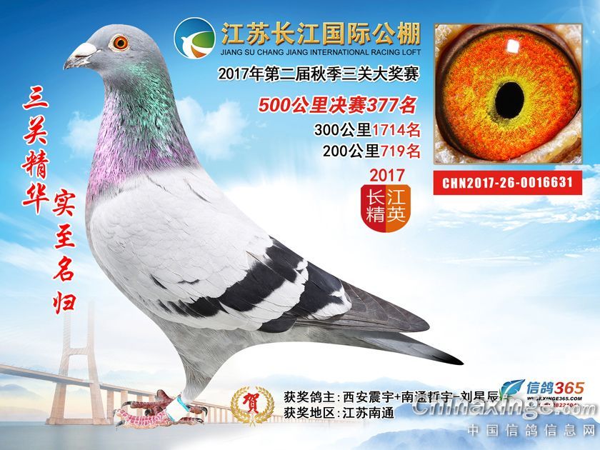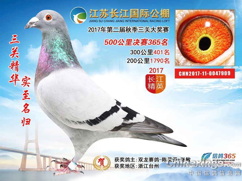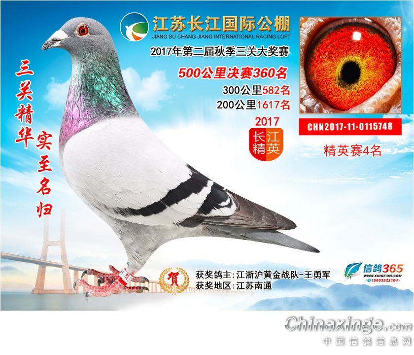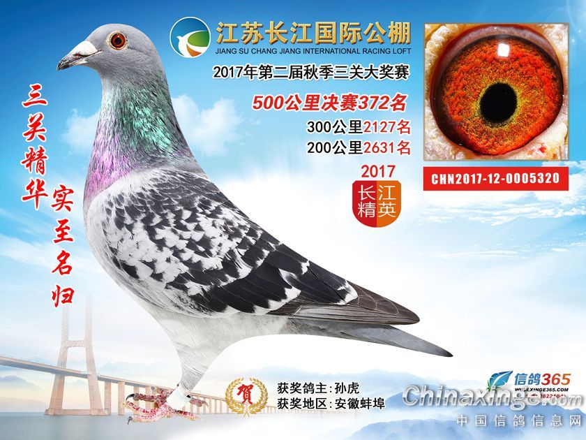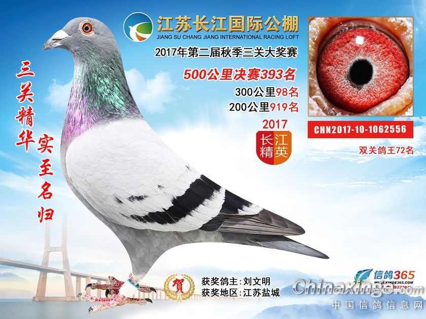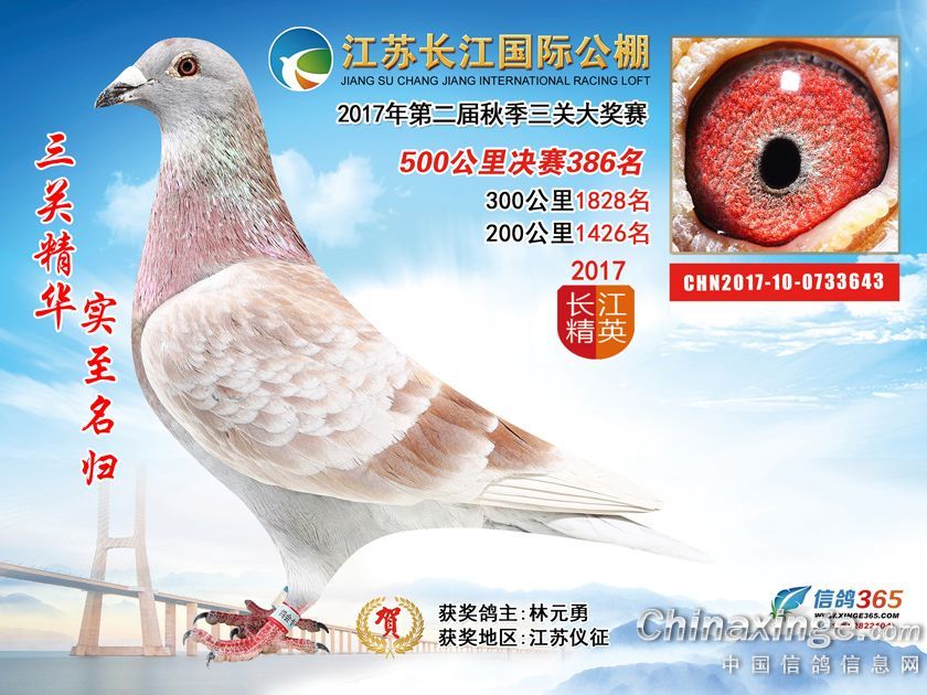 作品说明: 江苏长江国际公棚2017年获奖鸽351-400名