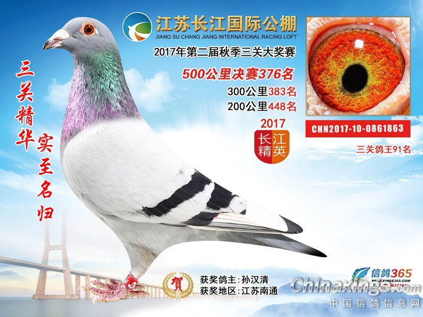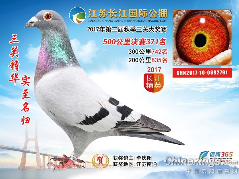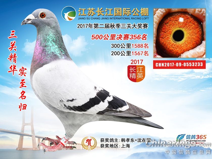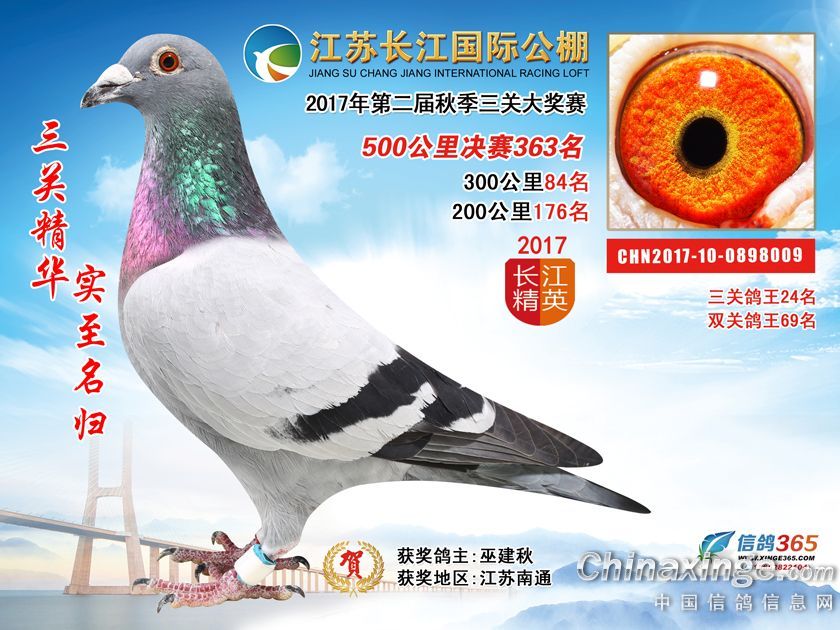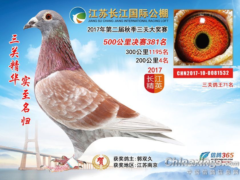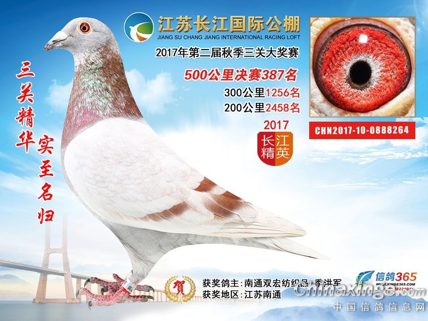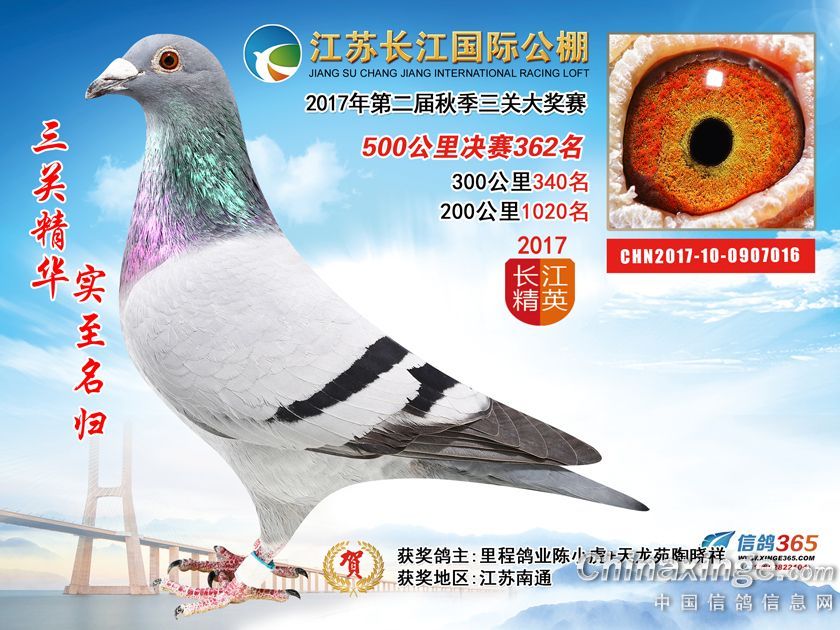 作品说明: 江苏长江国际公棚2017年获奖鸽351-400名