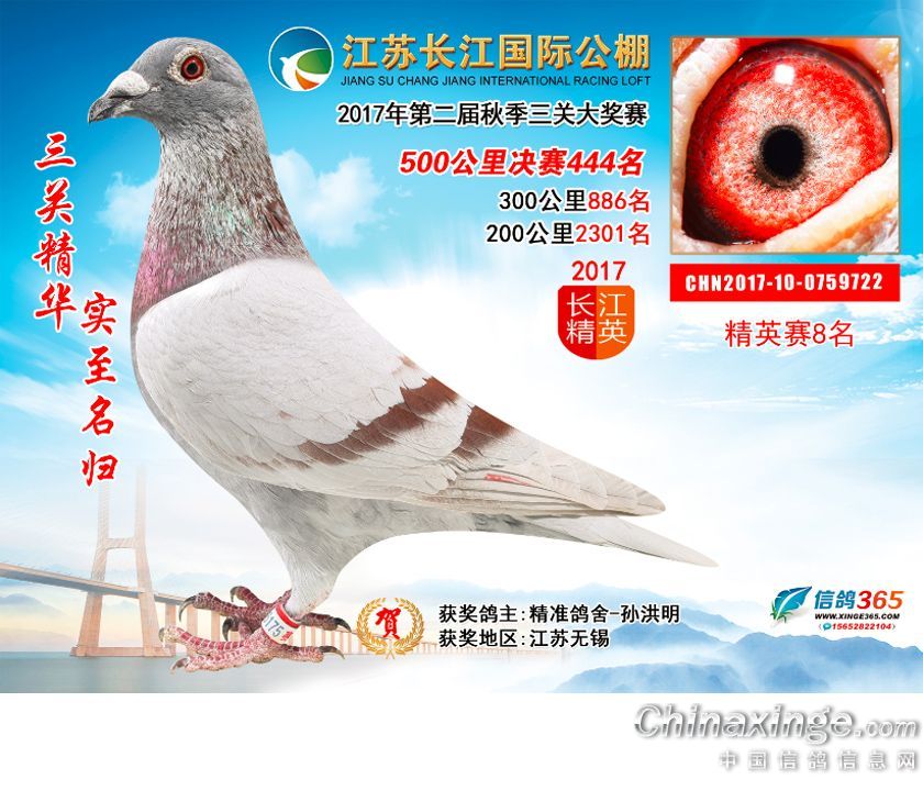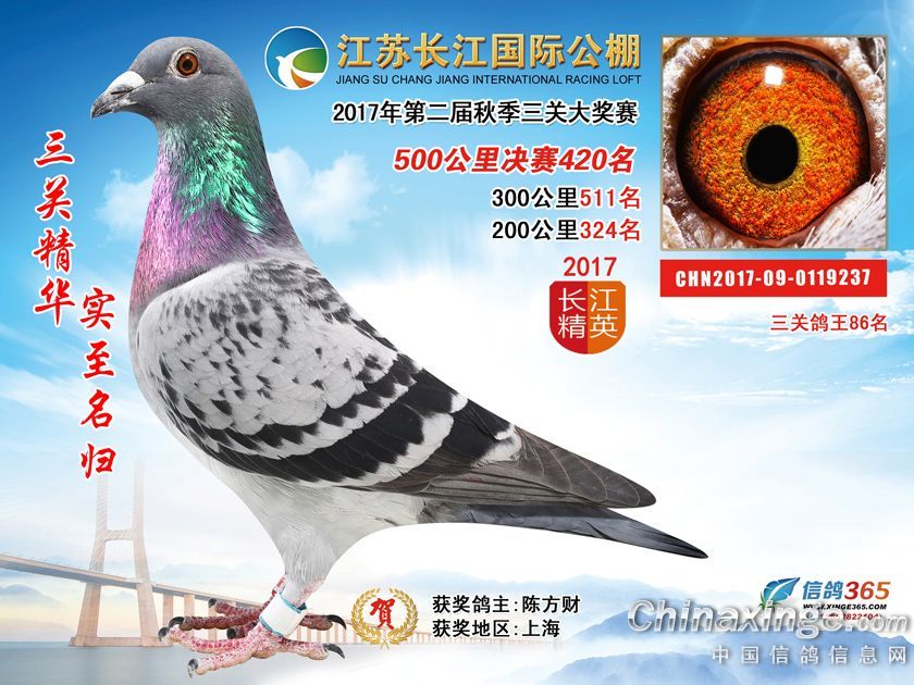 作品说明: 江苏长江国际公棚2017年获奖鸽401-450名
