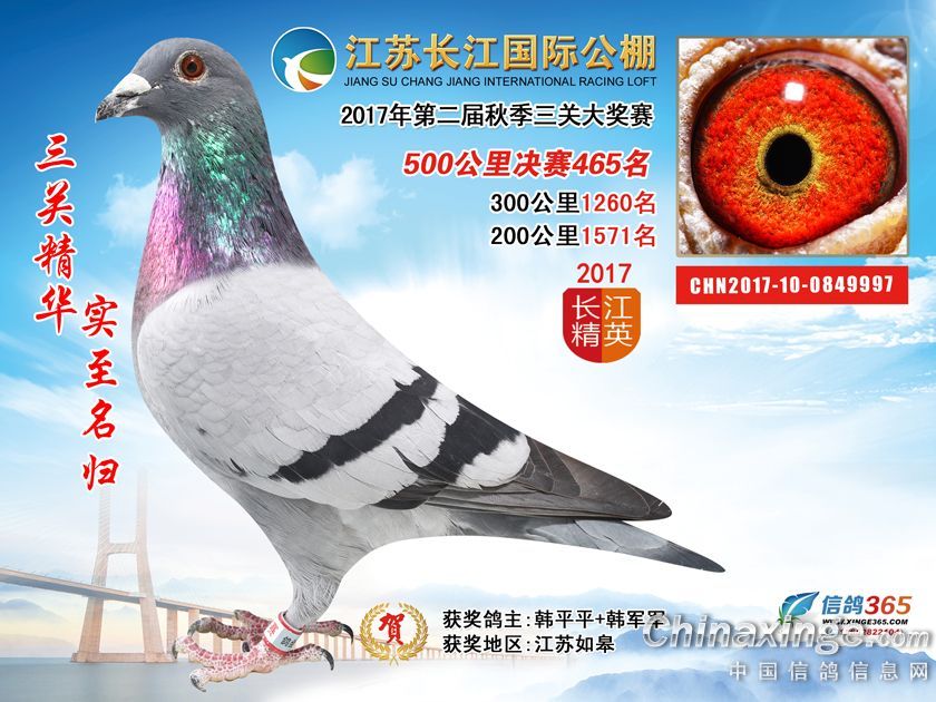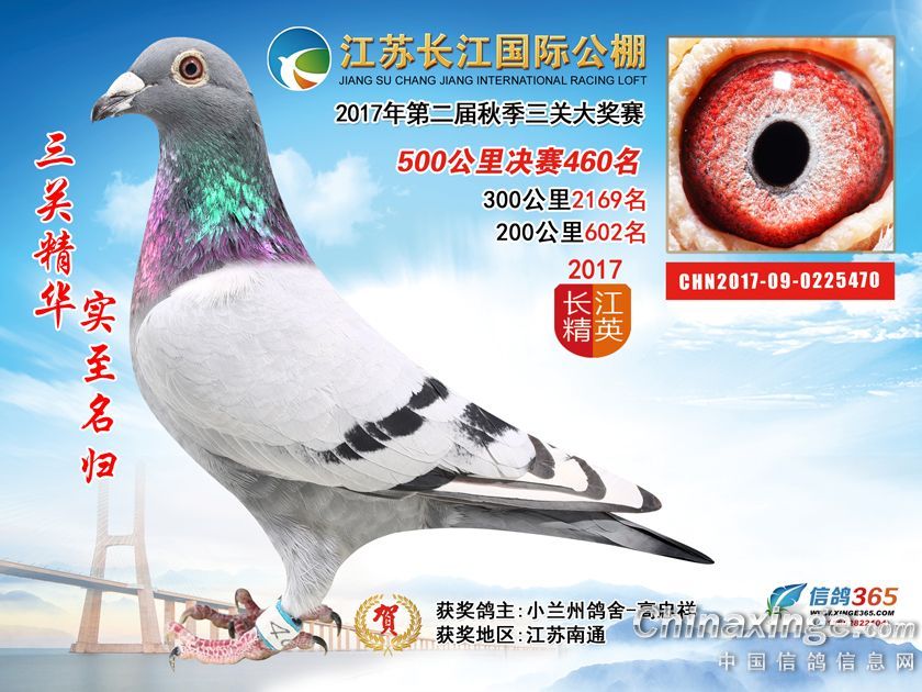 作品说明: 江苏长江国际公棚2017年获奖鸽451-500名