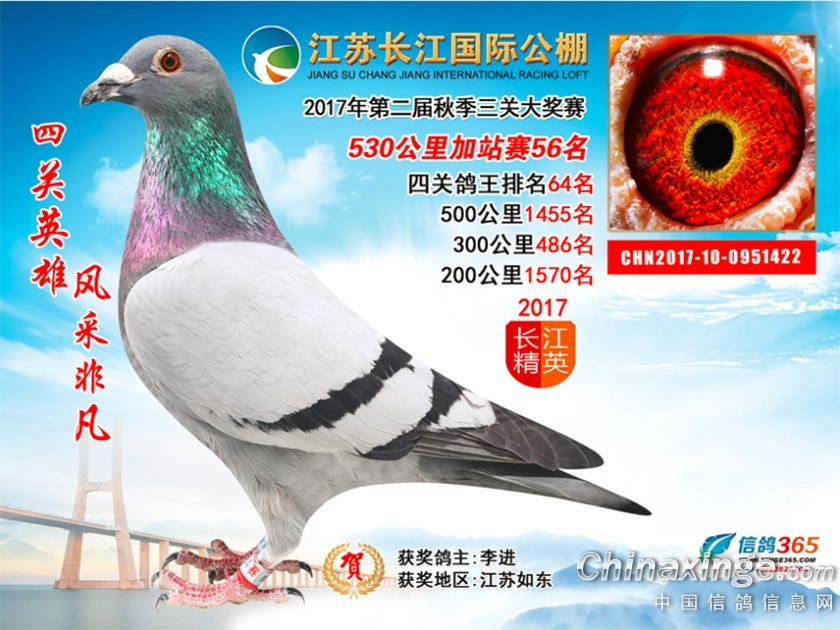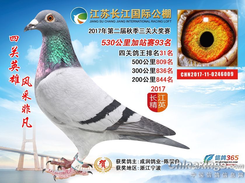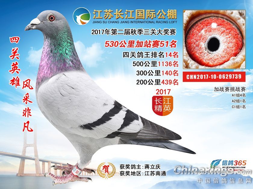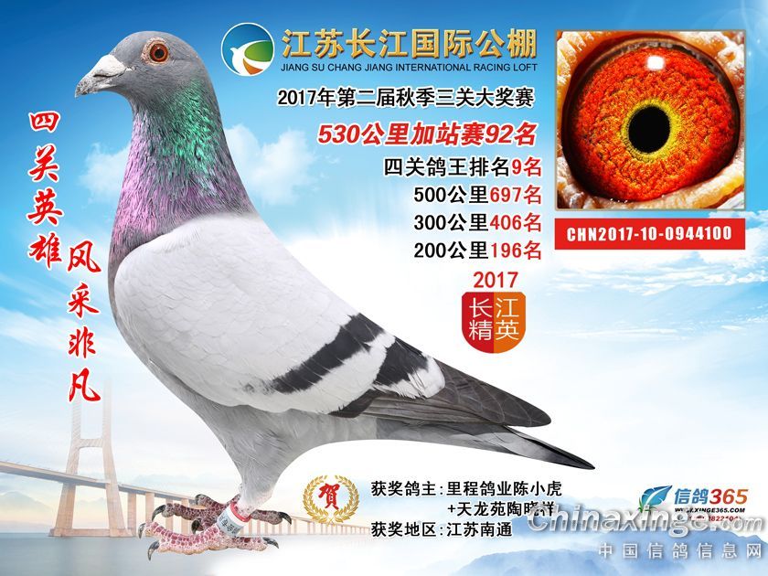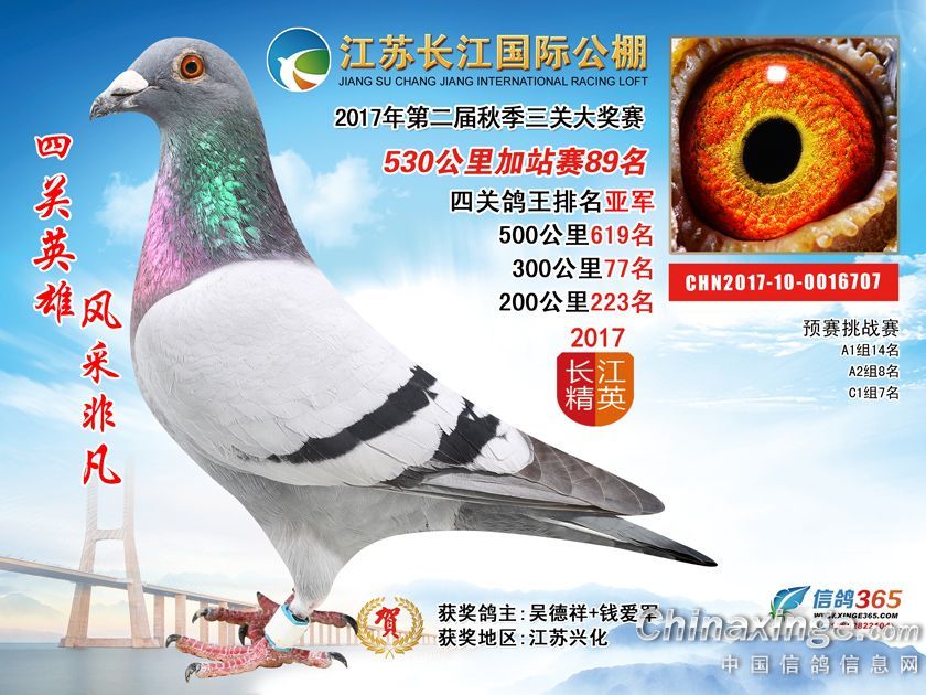 作品说明: 江苏长江国际公棚2017年加站赛获奖鸽51-100名