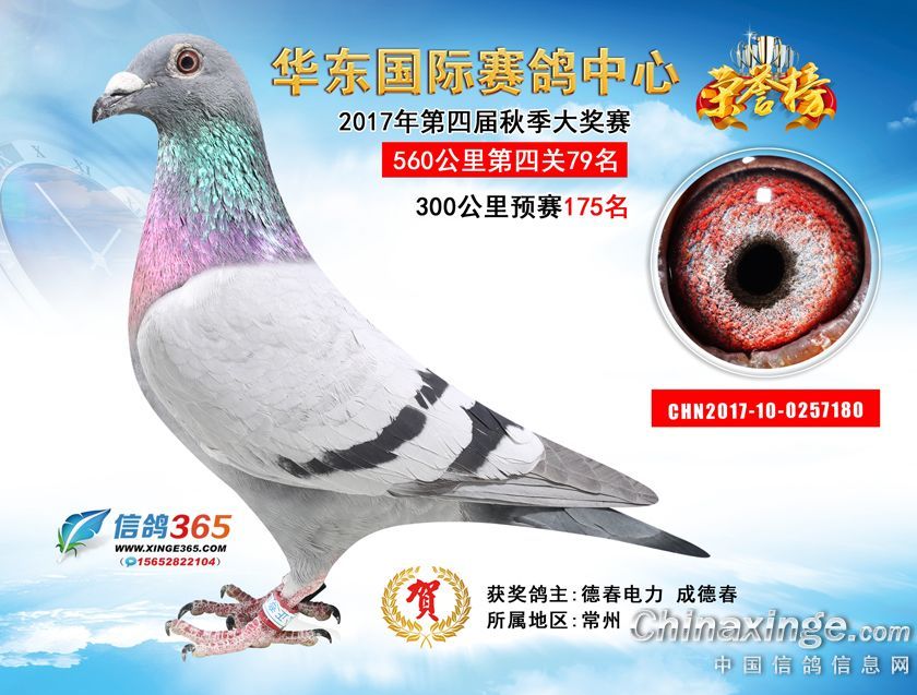 作品说明: 华东国际赛鸽中心2017年加站赛获奖鸽51-100名