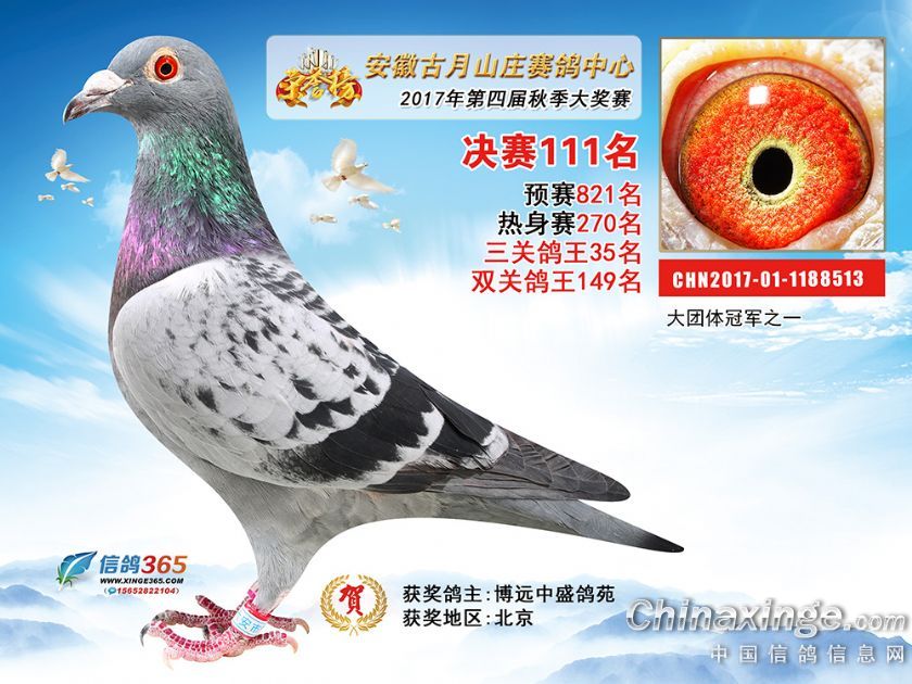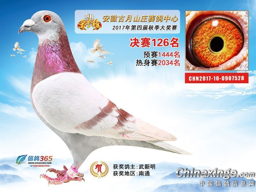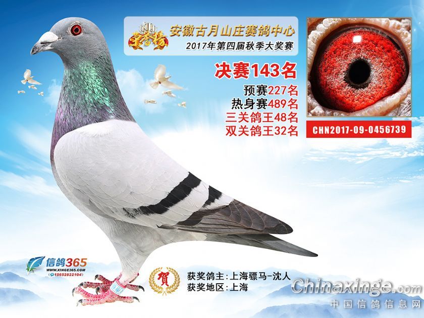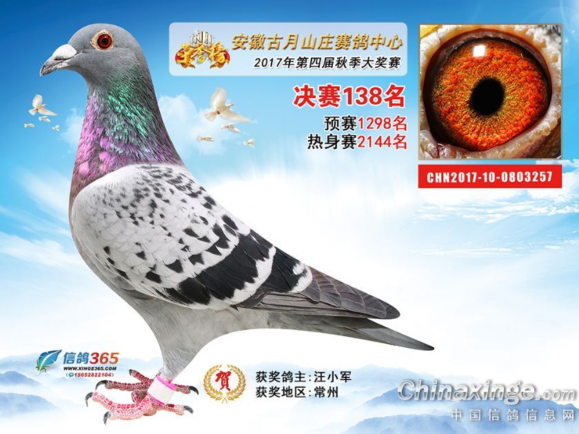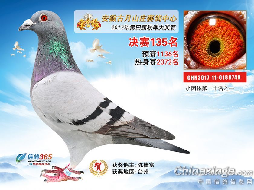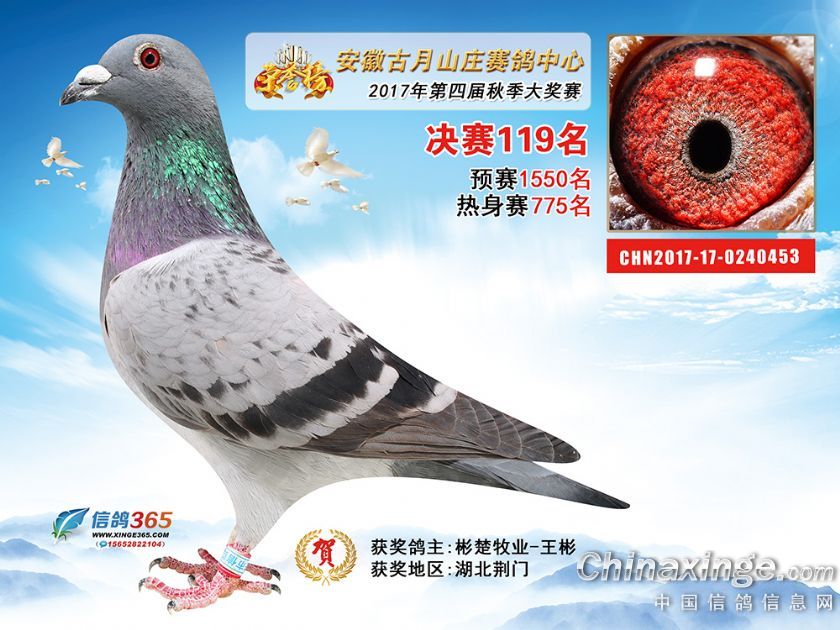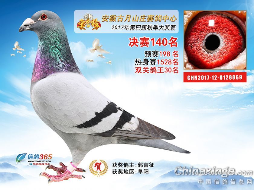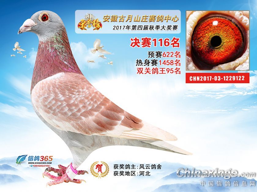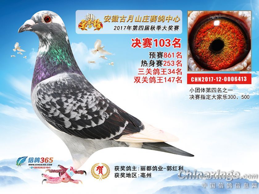 作品说明: 安徽古月赛鸽中心2017年获奖鸽101-150名