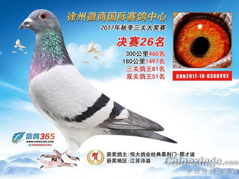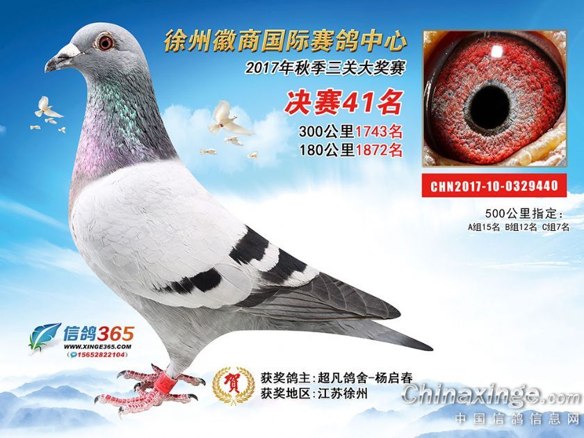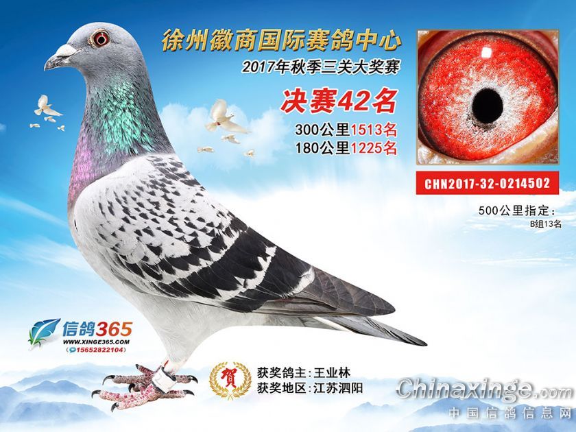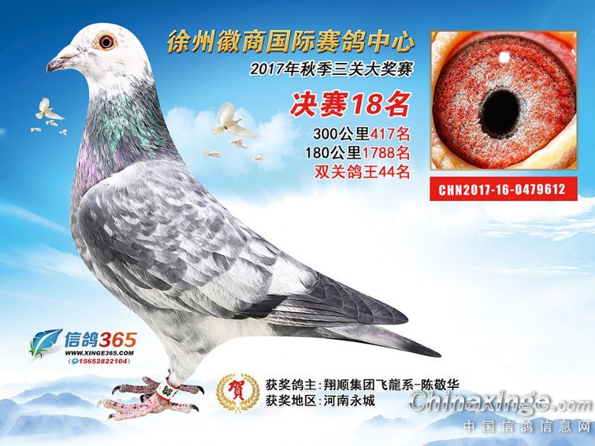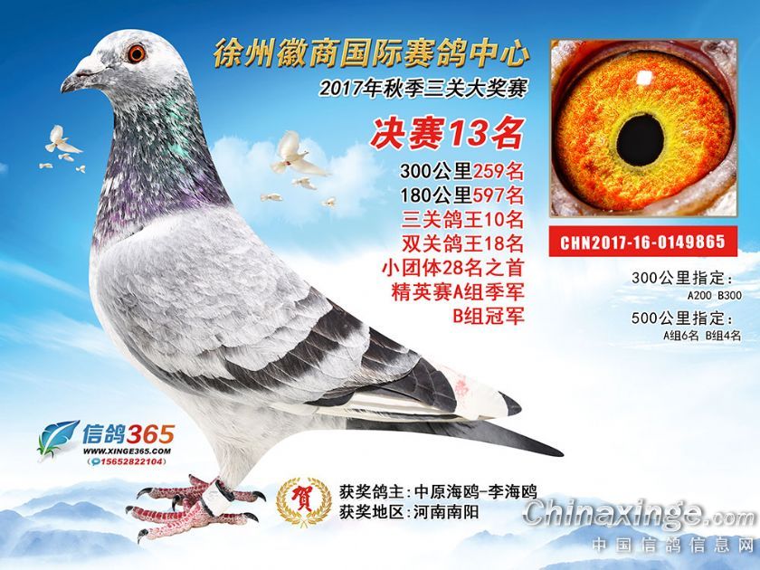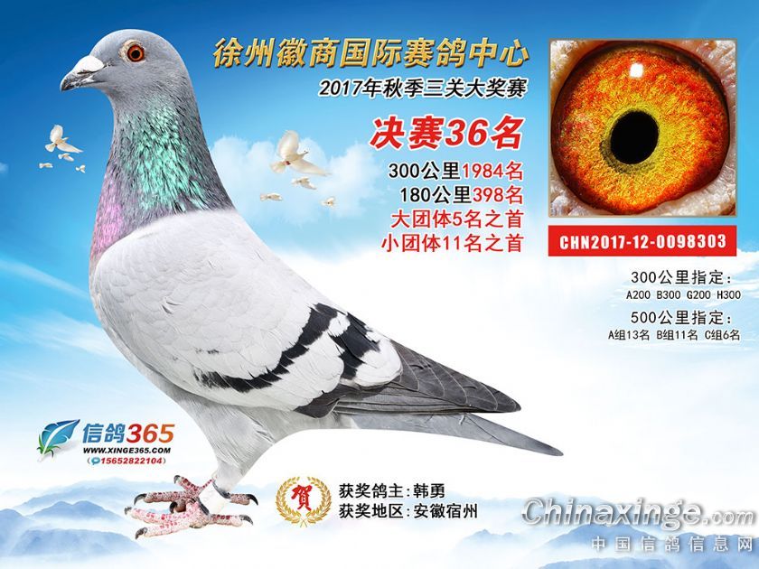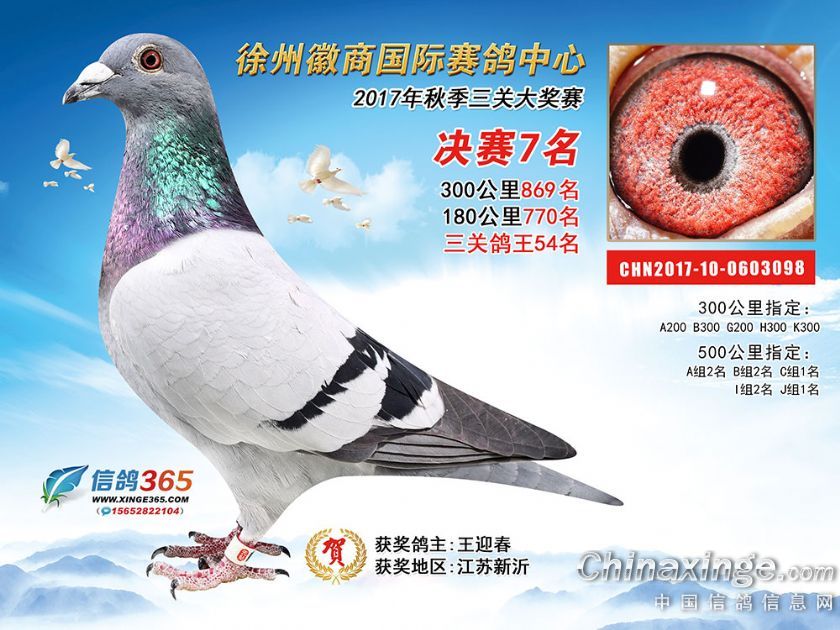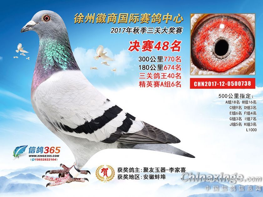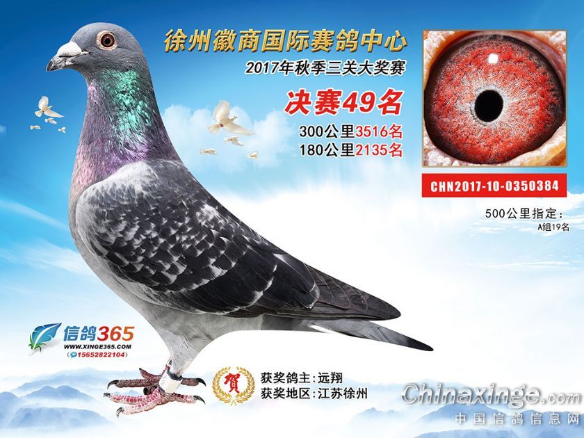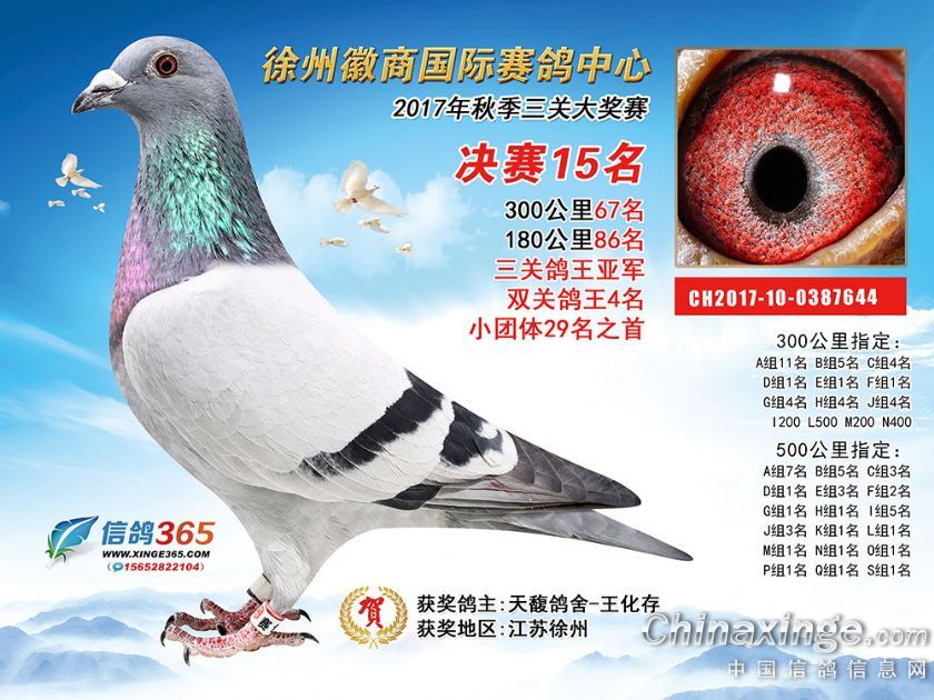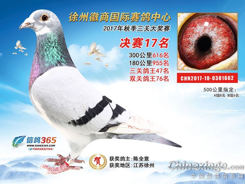 作品说明: 徐州徽商国际赛鸽中心2017年获奖鸽1-50名