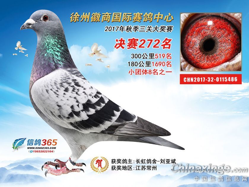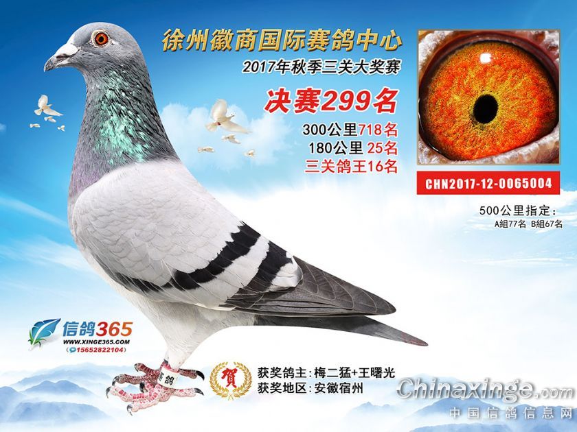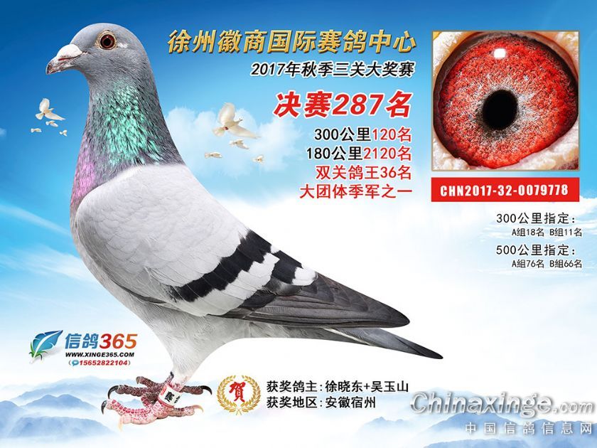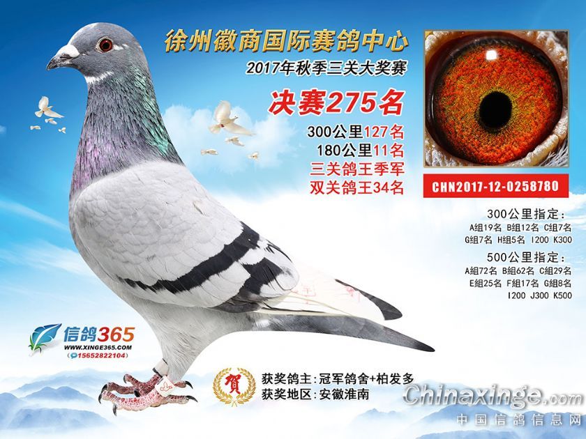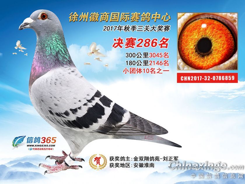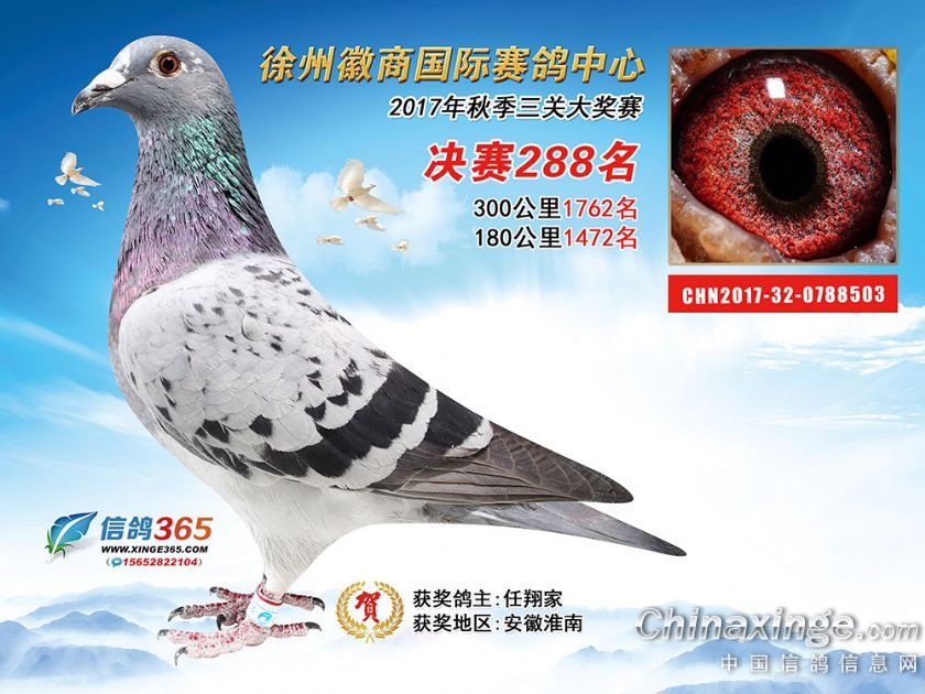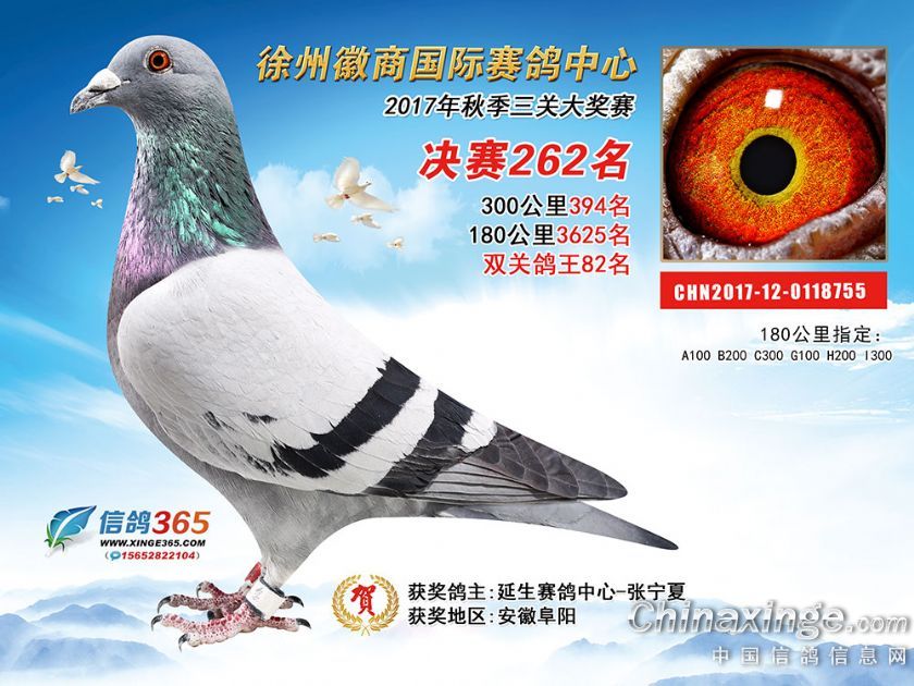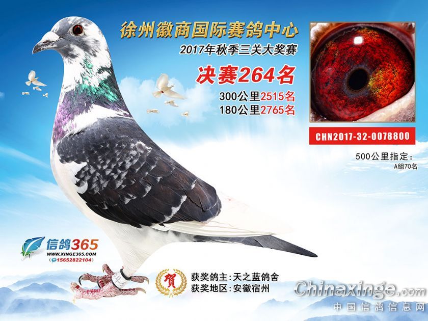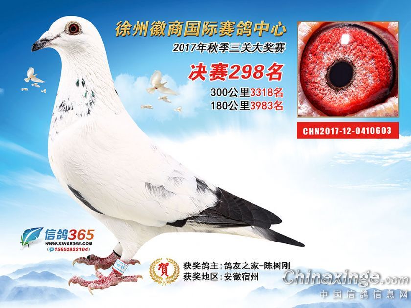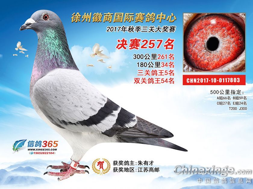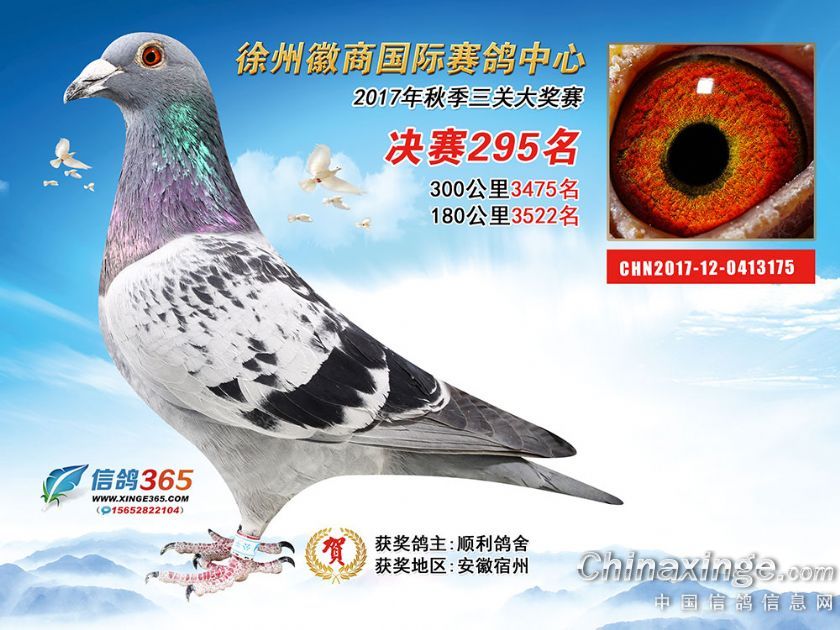 作品说明: 徐州徽商国际赛鸽中心2017年获奖鸽251-300名