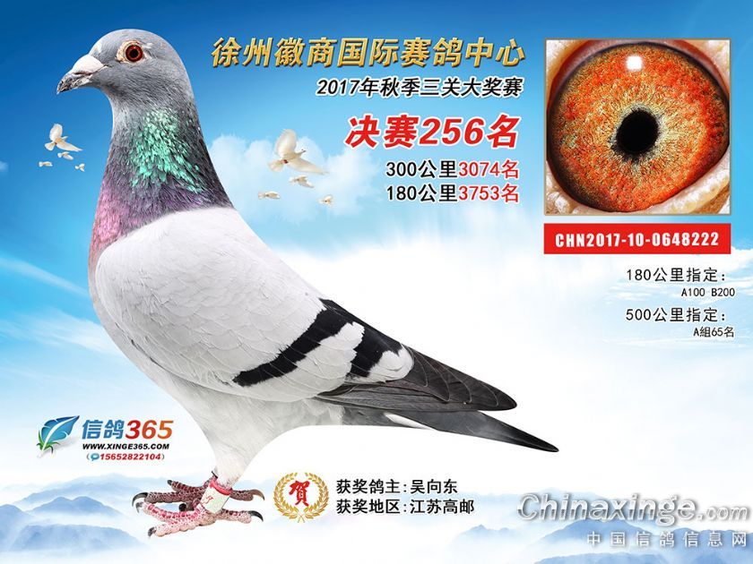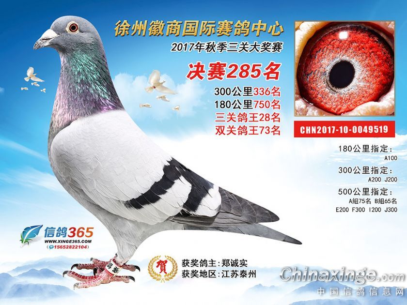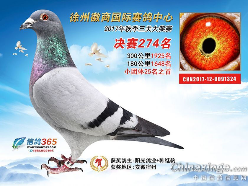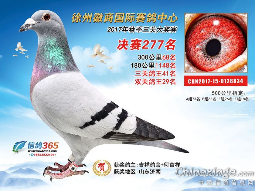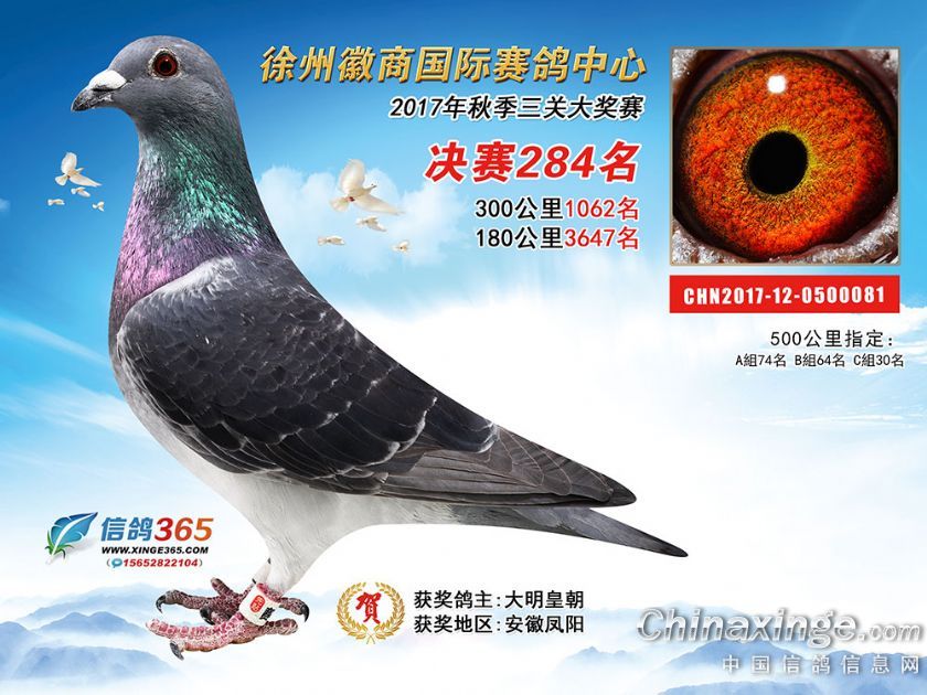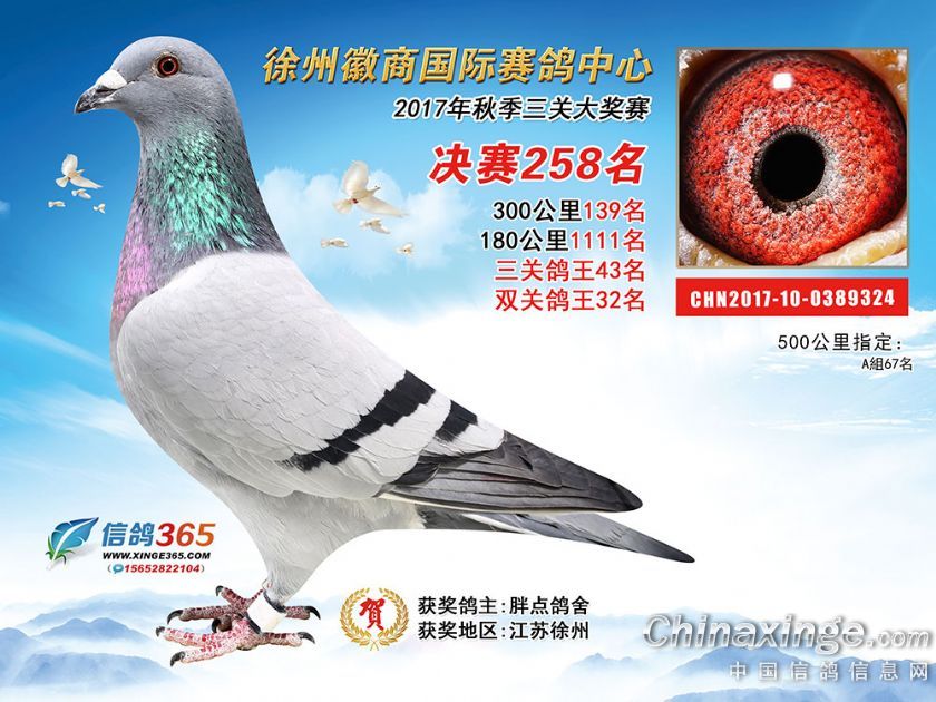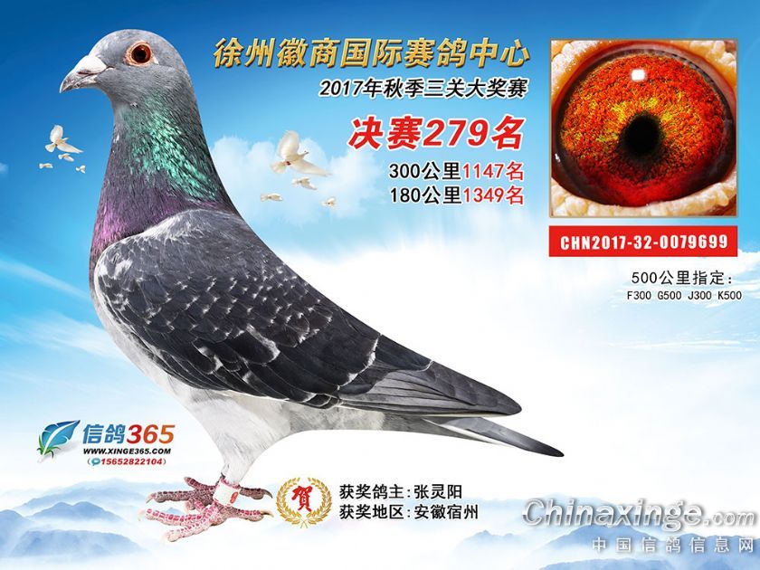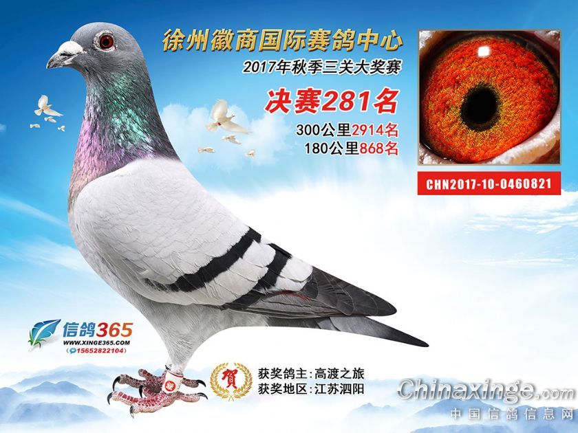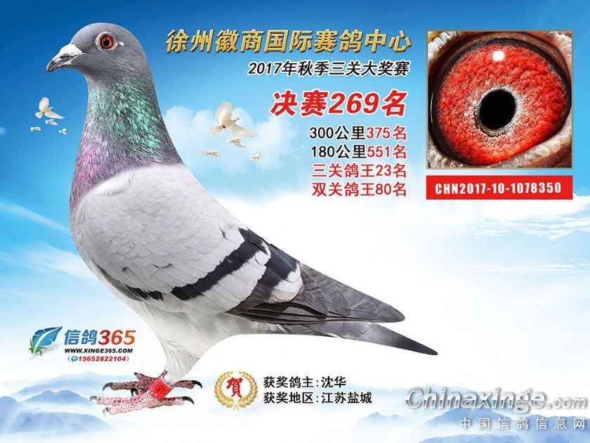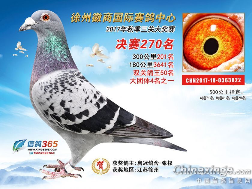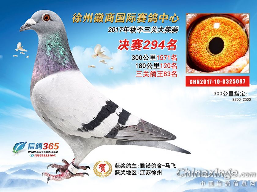 作品说明: 徐州徽商国际赛鸽中心2017年获奖鸽251-300名