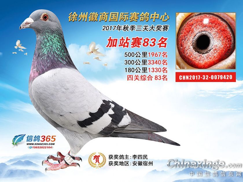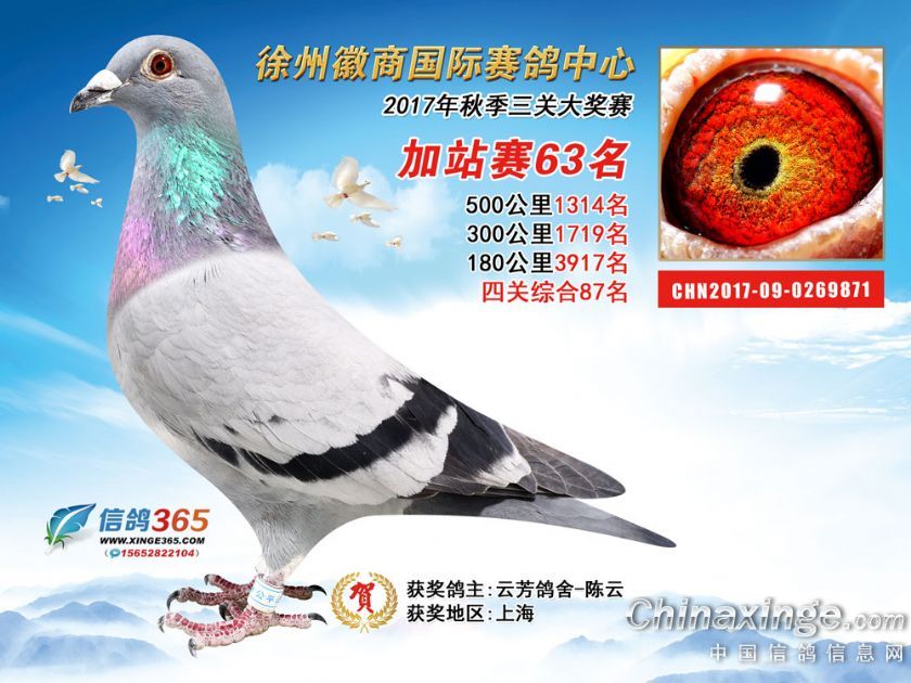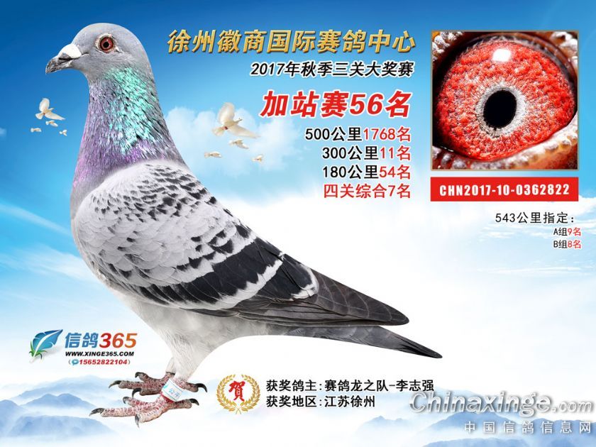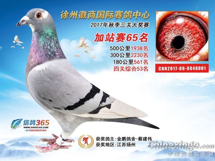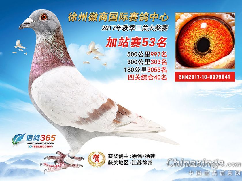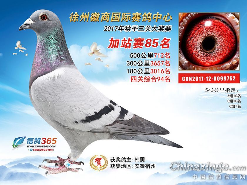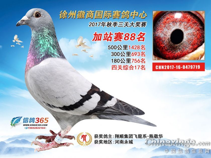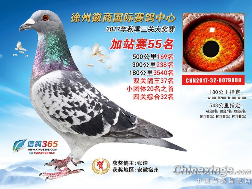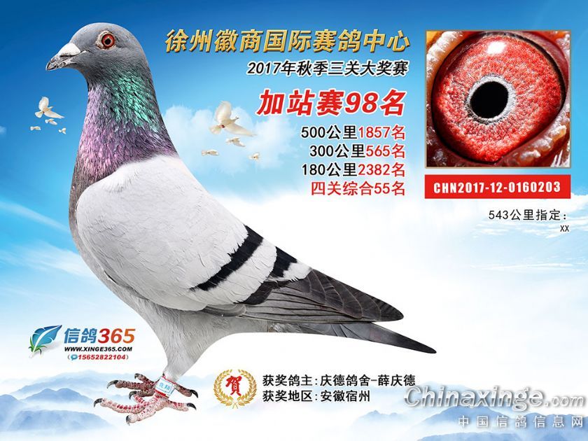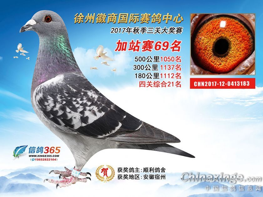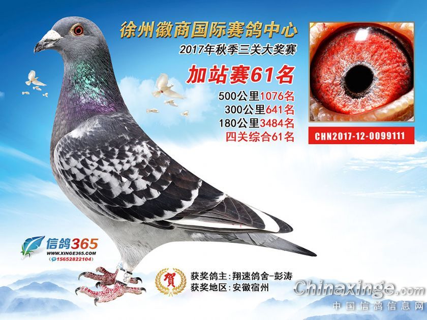 作品说明: 徐州徽商国际赛鸽中心17年加站赛获奖鸽51-100名