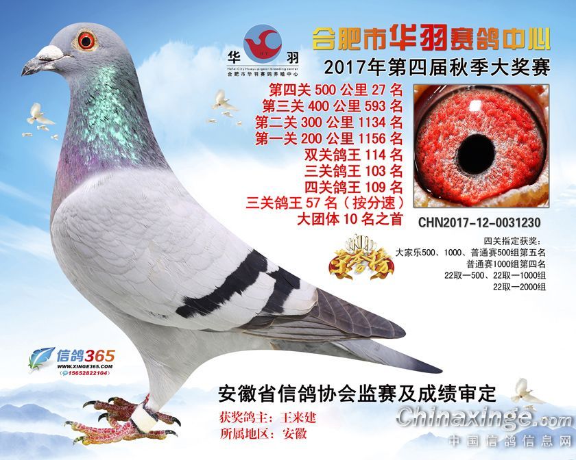 合肥市华羽赛鸽中心2017年获奖鸽1-30名