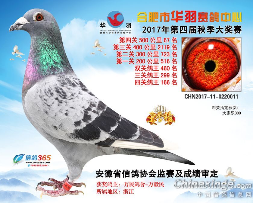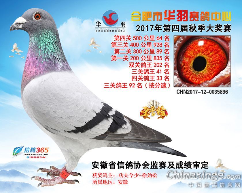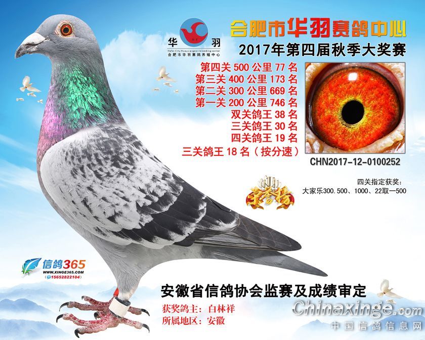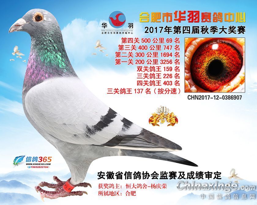 作品说明: 合肥市华羽赛鸽中心2017年获奖鸽61-90名