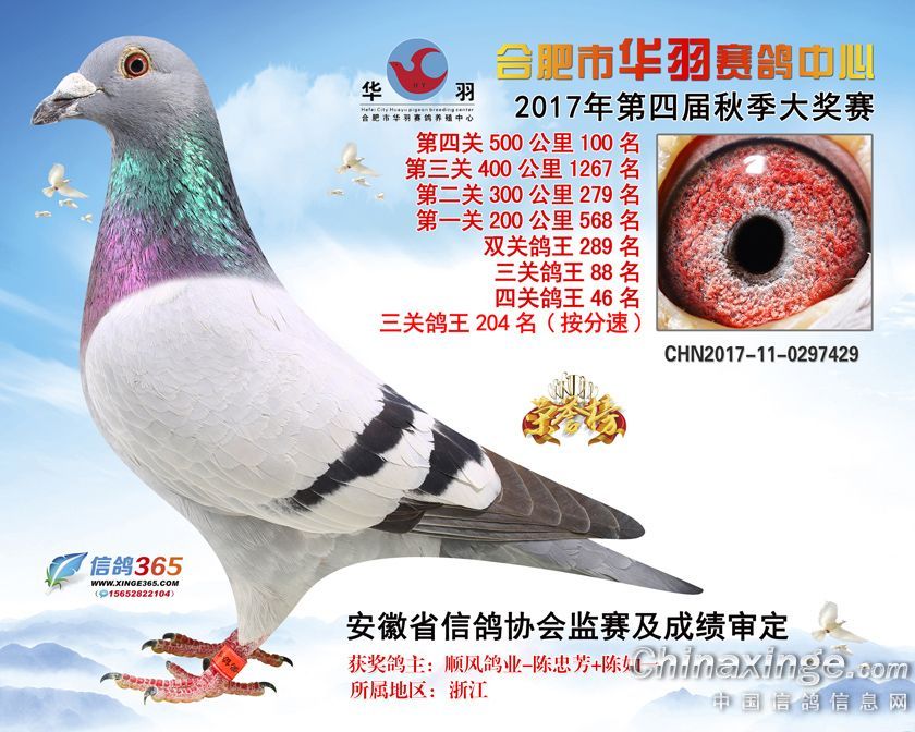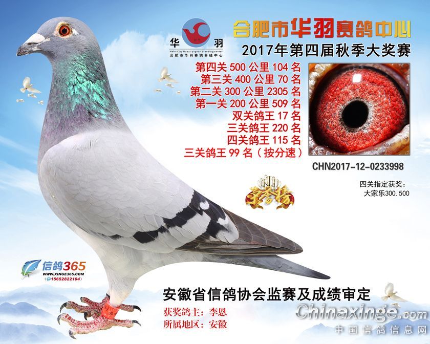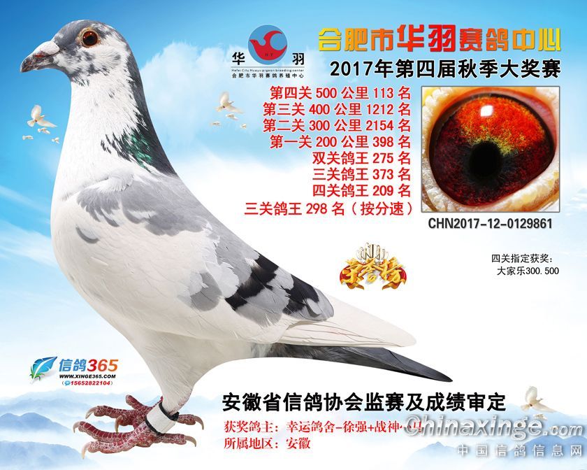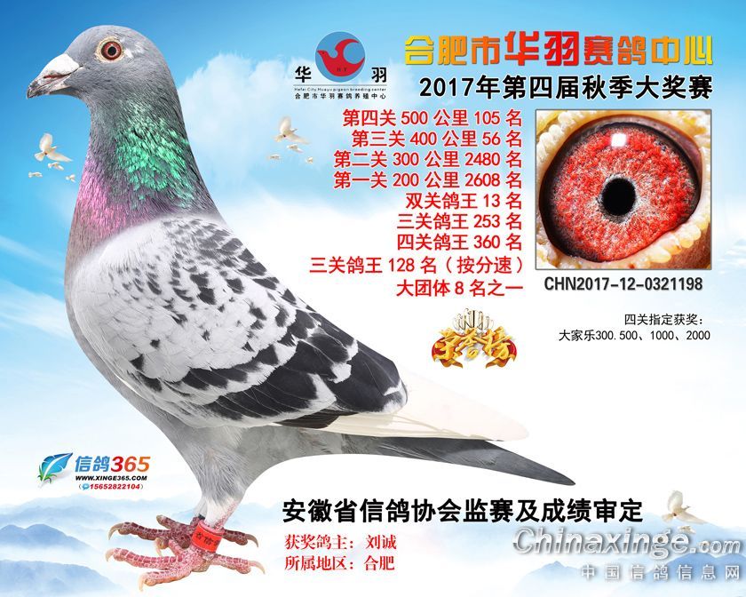作品说明: 合肥市华羽赛鸽中心2017年获奖鸽91-120名
