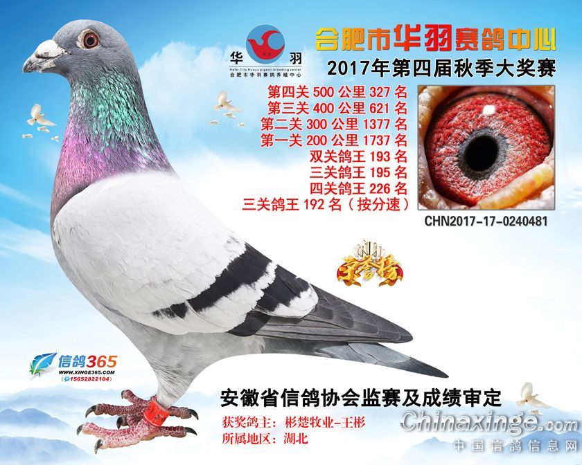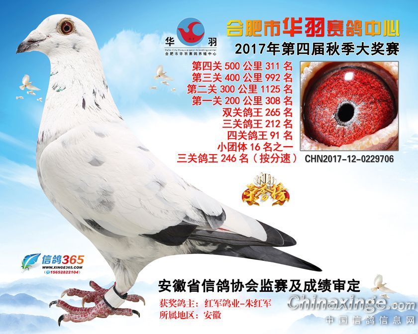 作品说明: 合肥市华羽赛鸽中心2017年获奖鸽301-330名