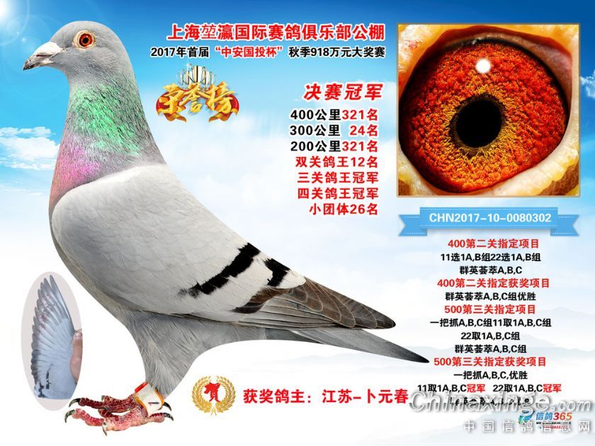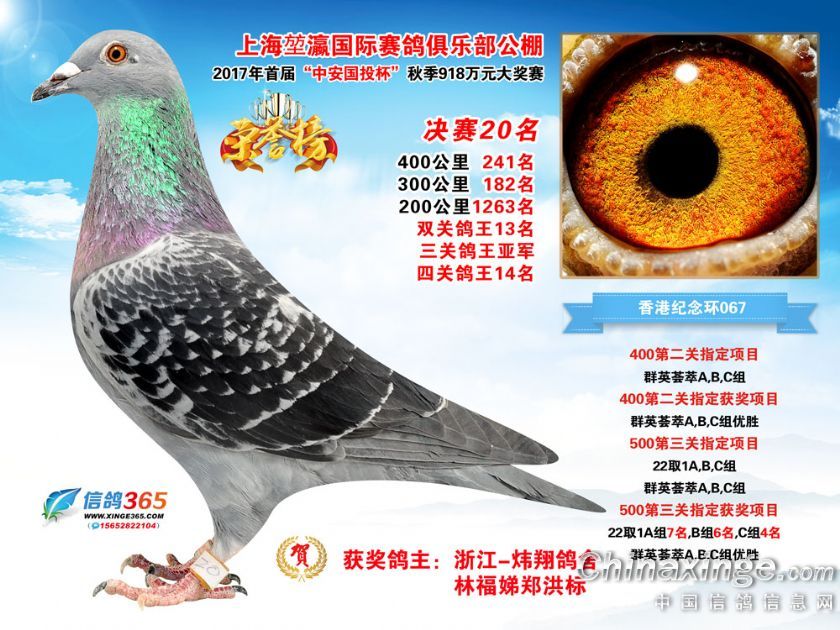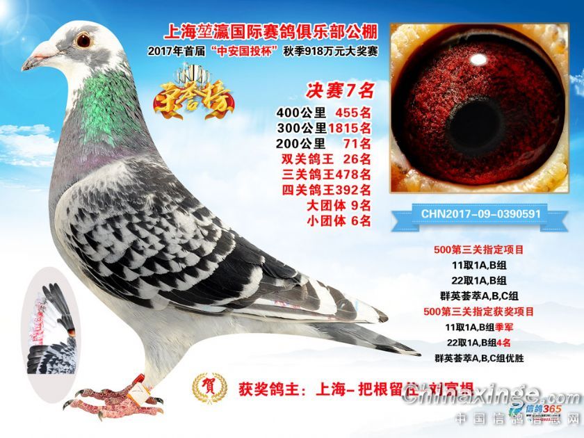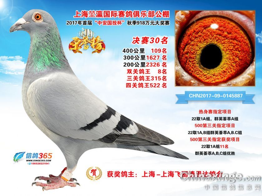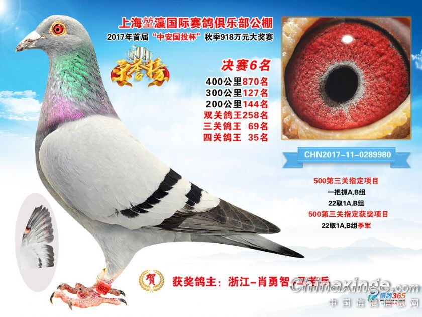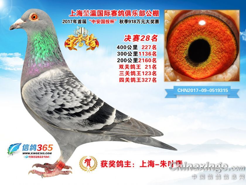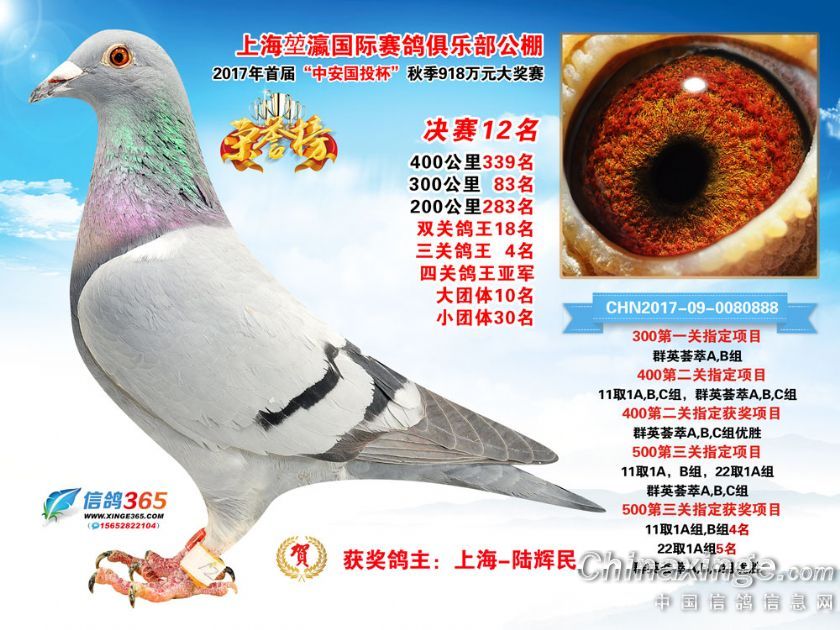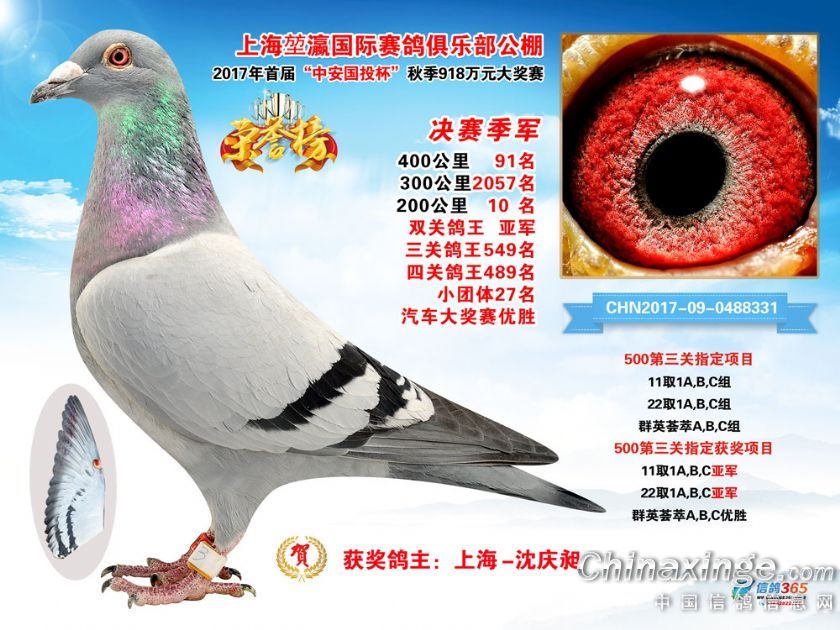 上海堃瀛国际赛鸽俱乐部公棚2017年获奖鸽1-30名