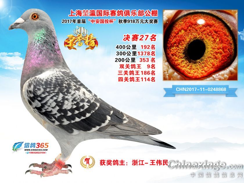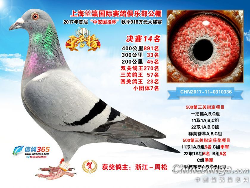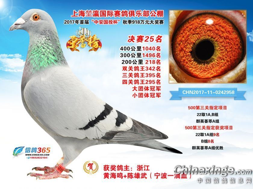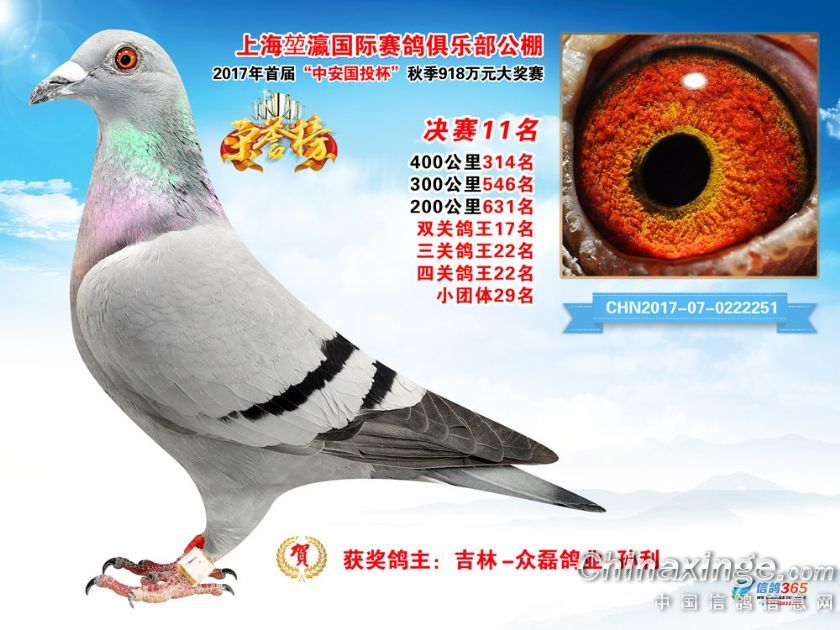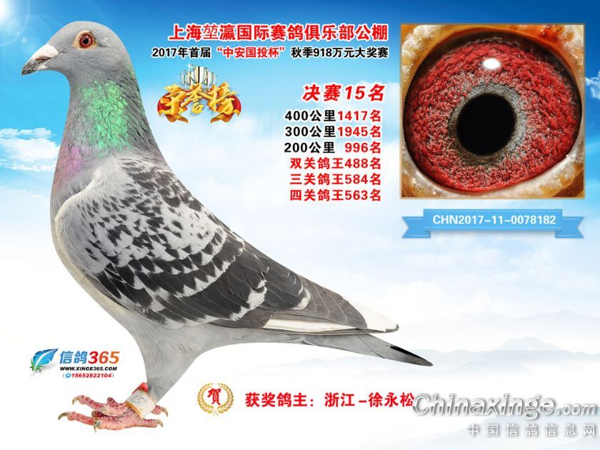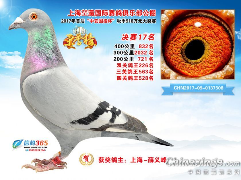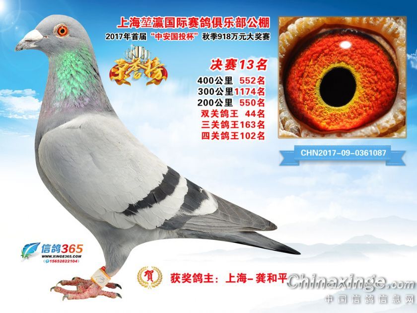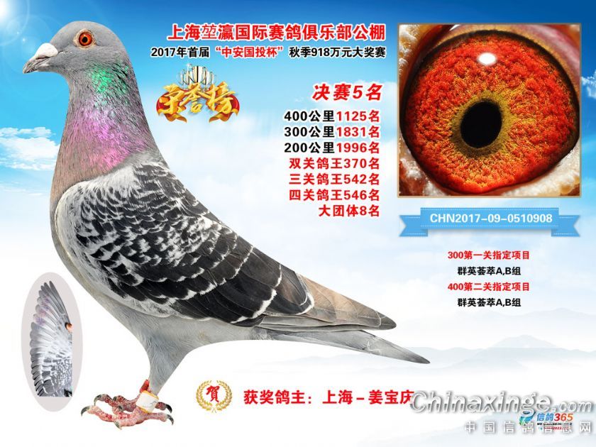 上海堃瀛国际赛鸽俱乐部公棚2017年获奖鸽1-30名