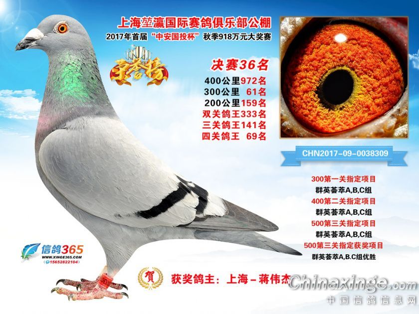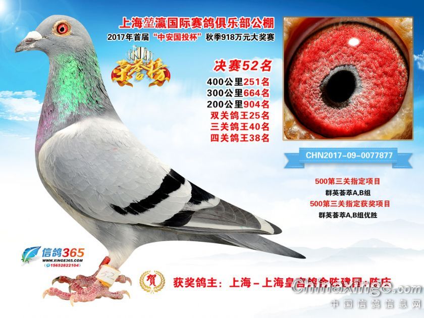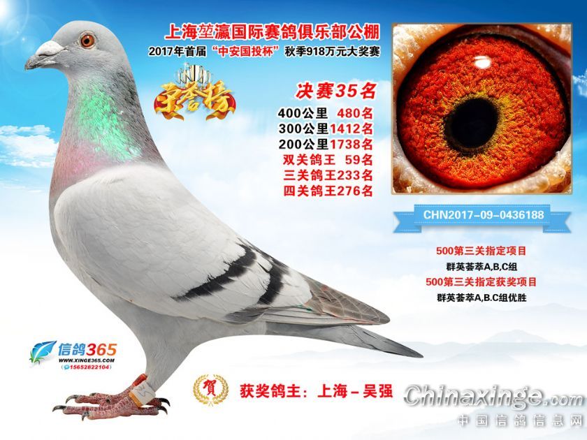 作品说明: 上海堃瀛国际赛鸽俱乐部公棚2017年获奖鸽31-60名