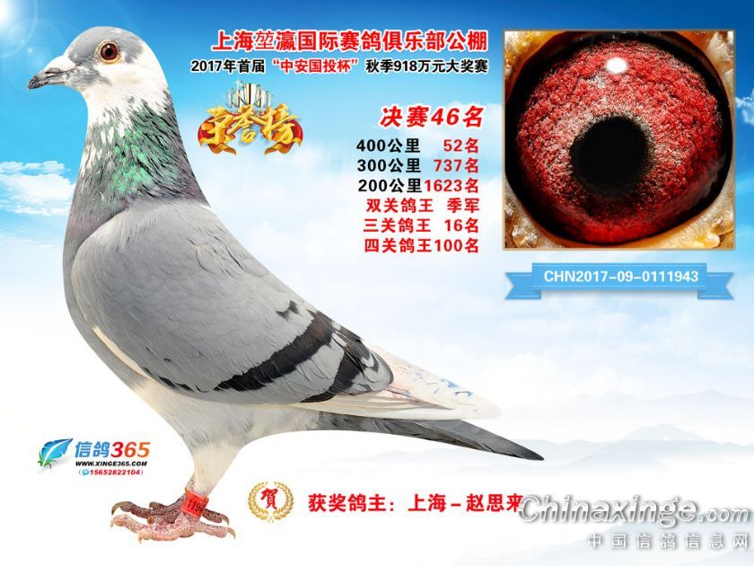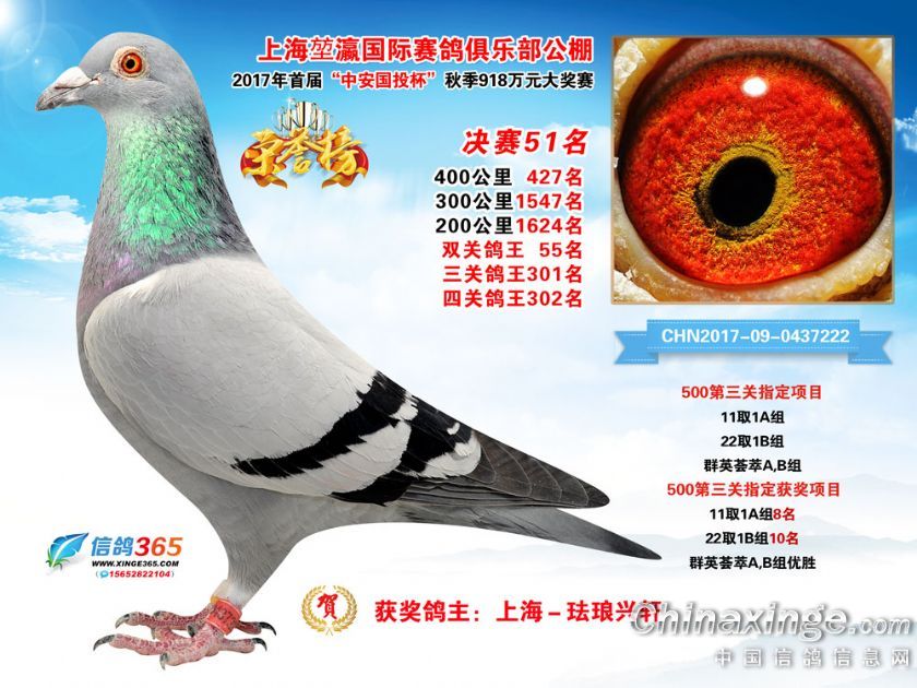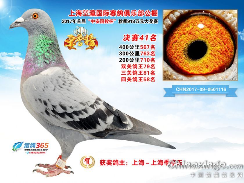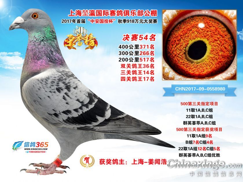 上海堃瀛国际赛鸽俱乐部公棚2017年获奖鸽31-60名