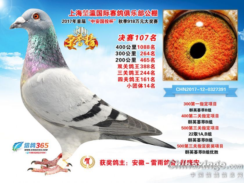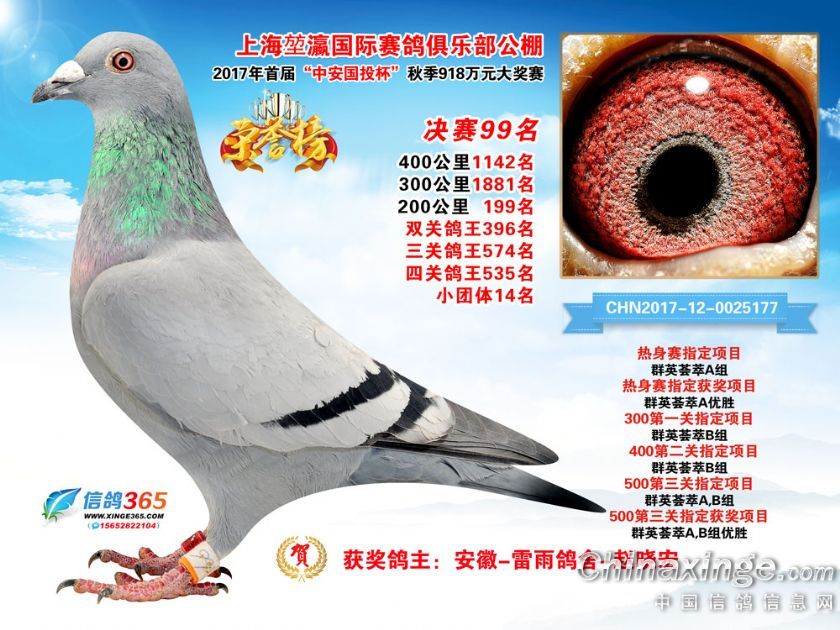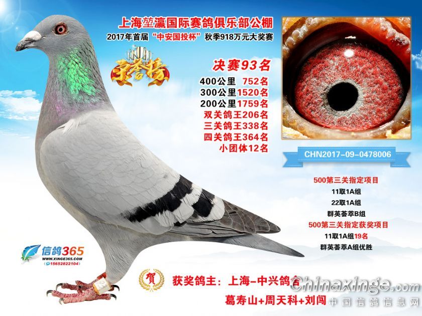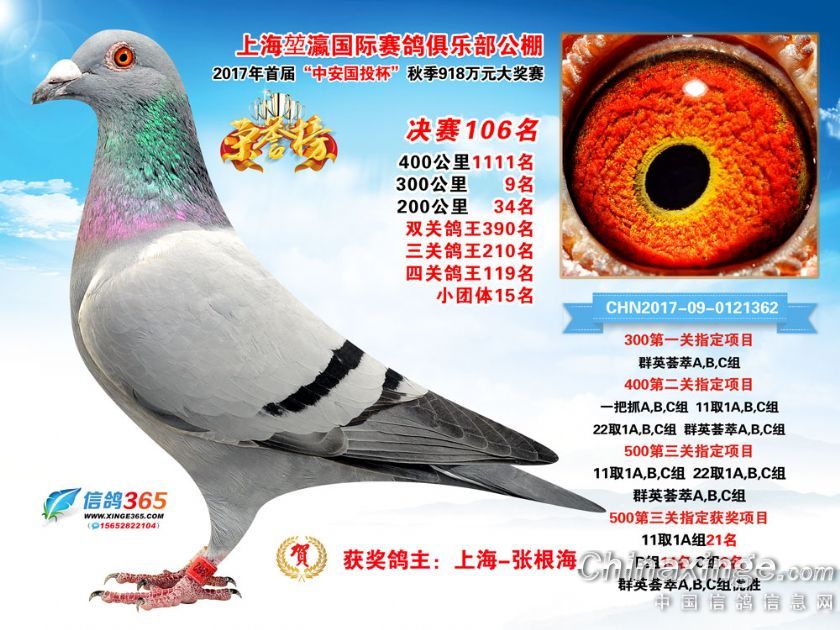 上海堃瀛国际赛鸽俱乐部公棚2017年获奖鸽91-120名