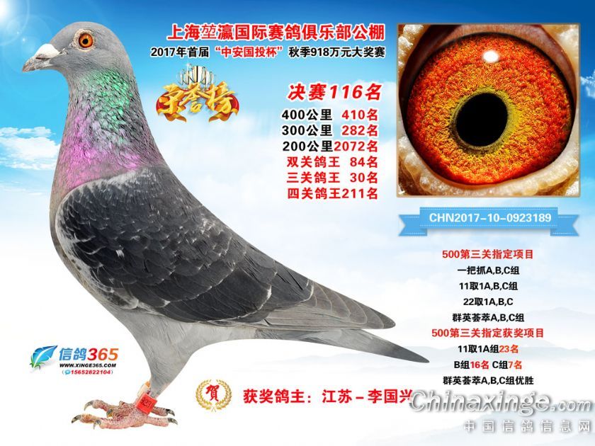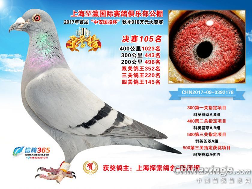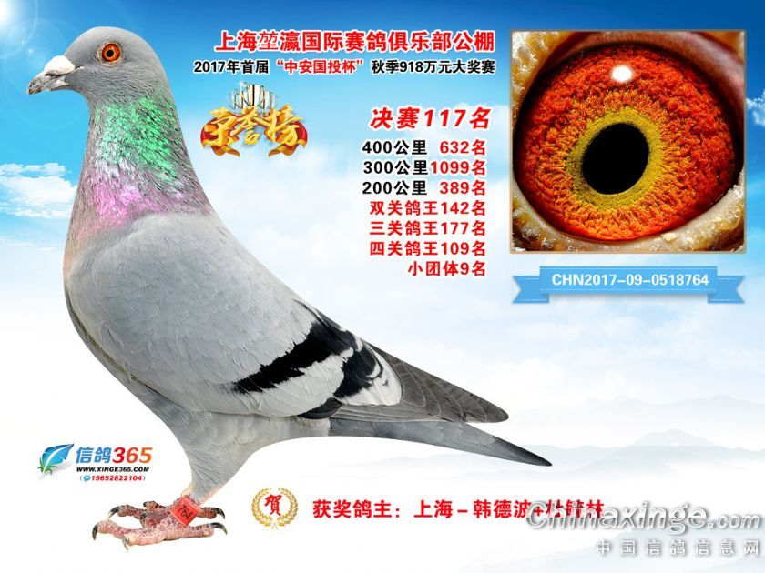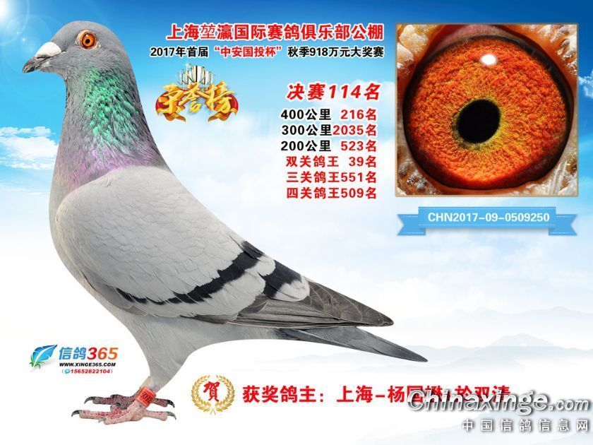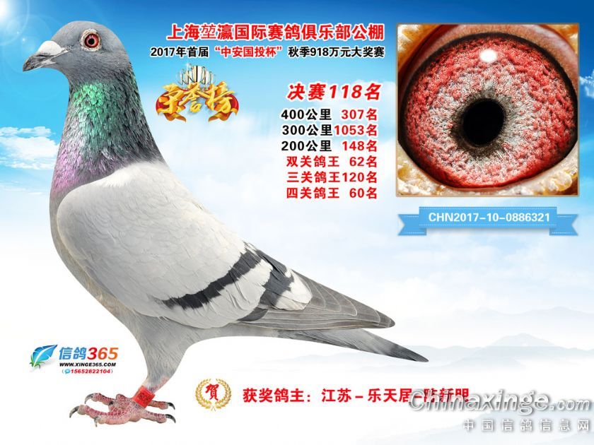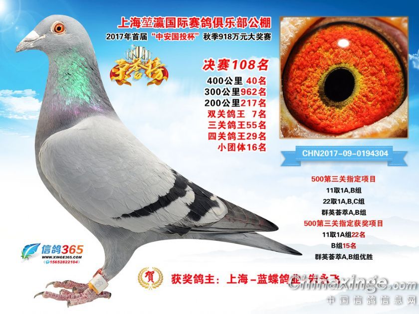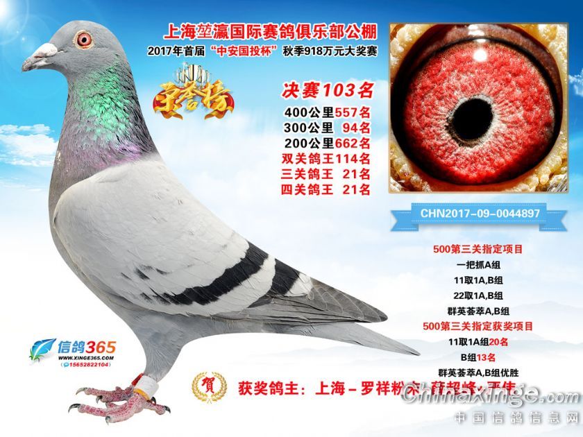 作品说明: 上海堃瀛国际赛鸽俱乐部公棚2017年获奖鸽91-120名