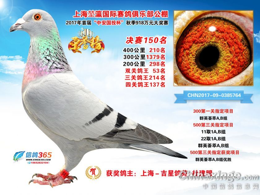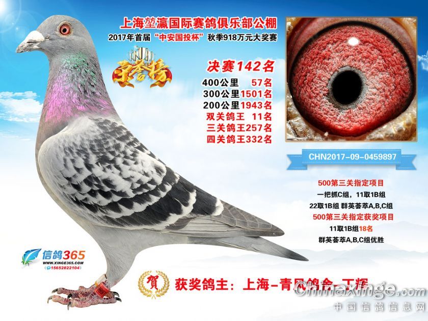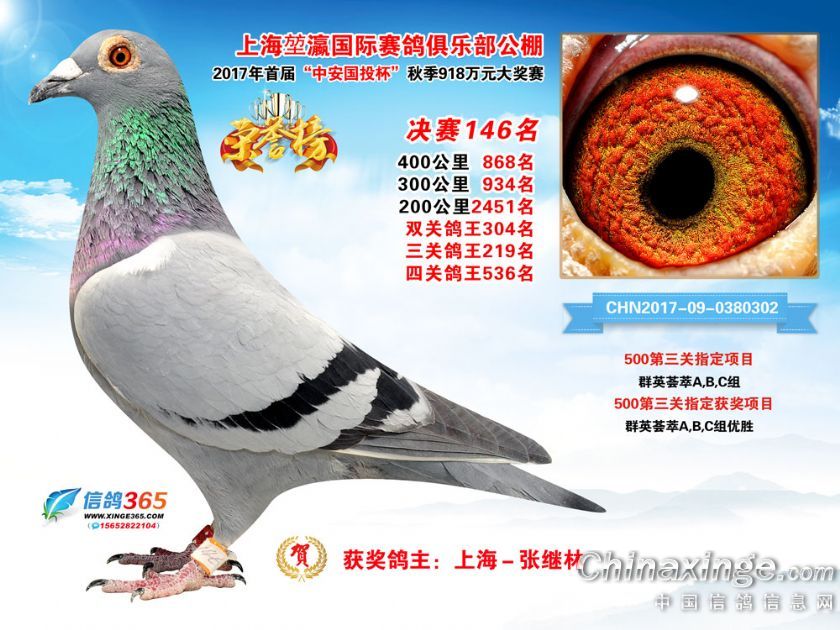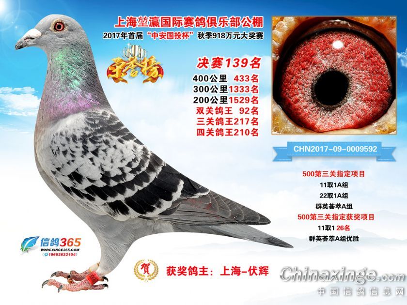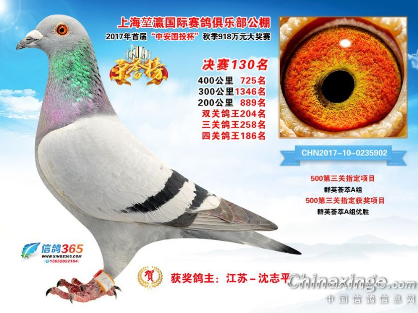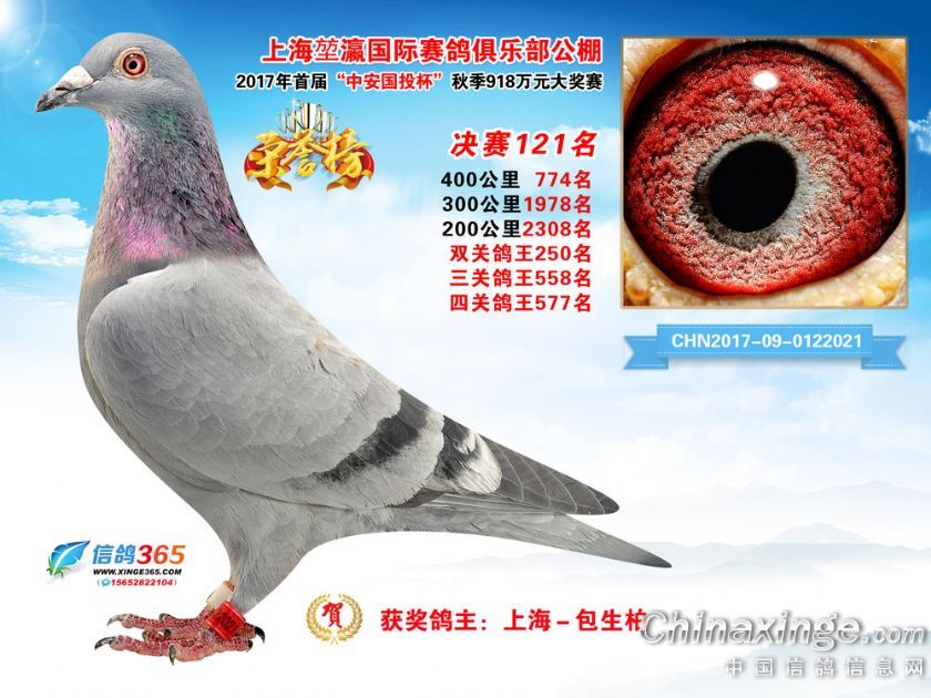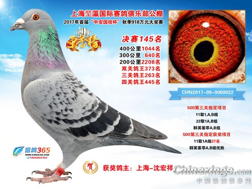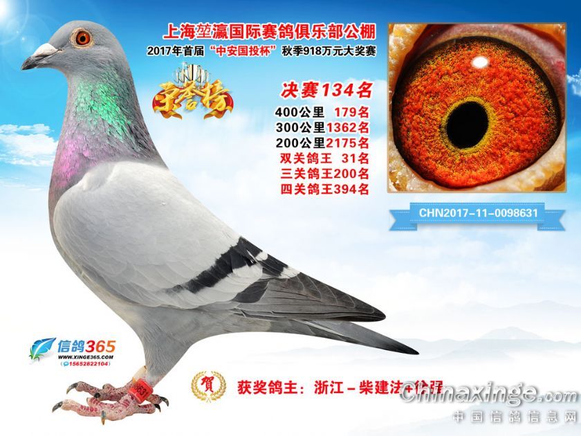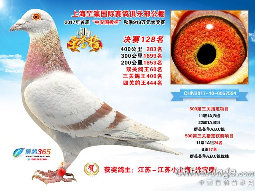 作品说明: 上海堃瀛国际赛鸽俱乐部公棚2017年获奖鸽121-150名