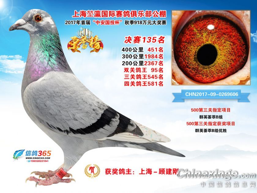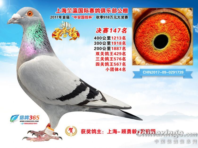 上海堃瀛国际赛鸽俱乐部公棚2017年获奖鸽121-150名