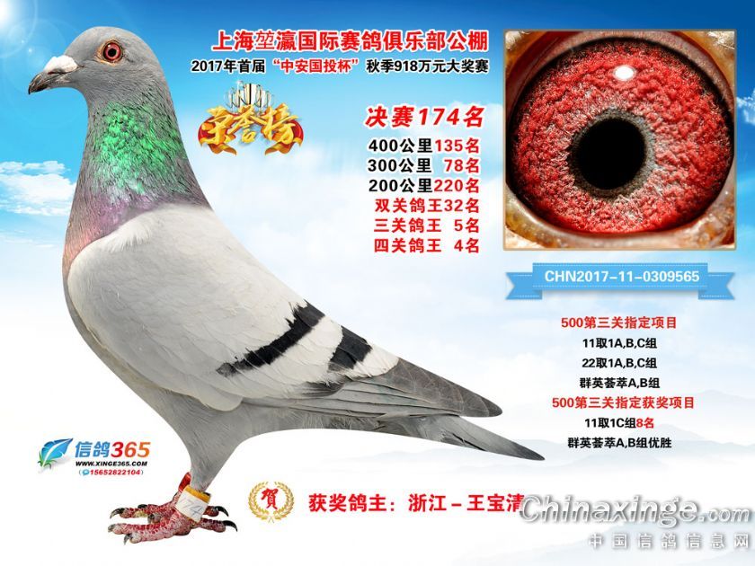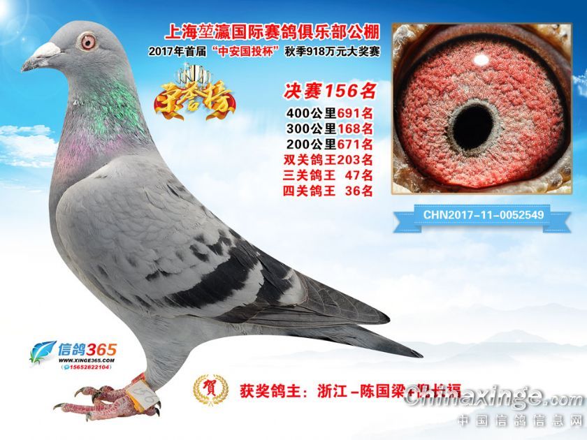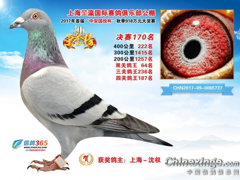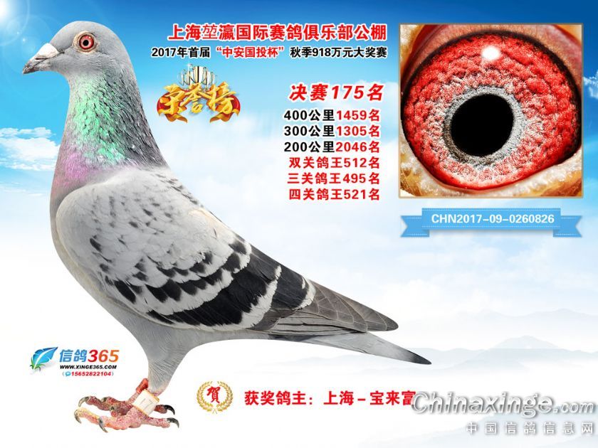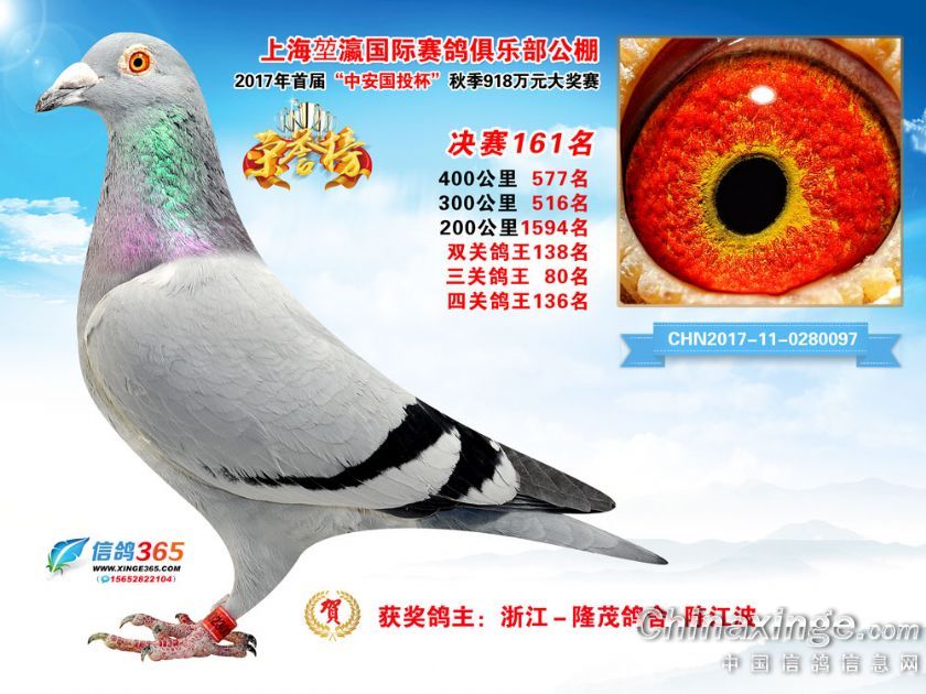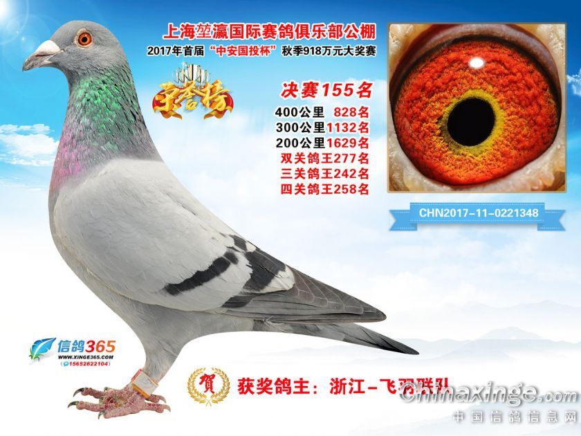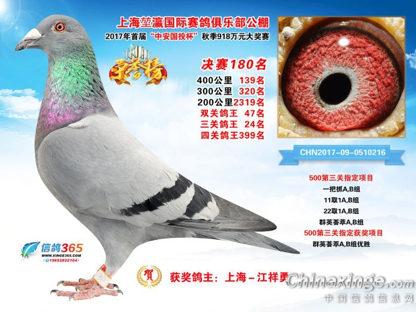 作品说明: 上海堃瀛国际赛鸽俱乐部公棚2017年获奖鸽151-180名