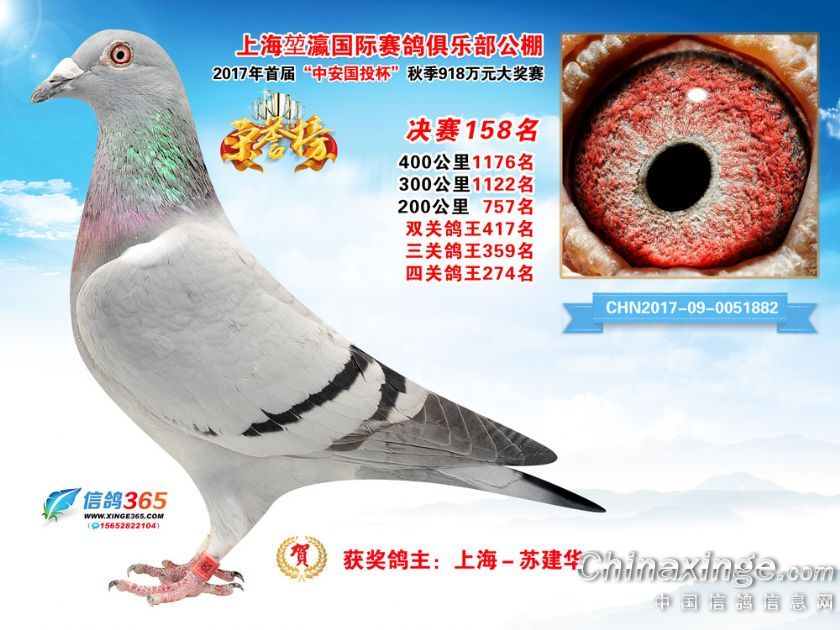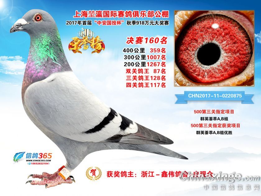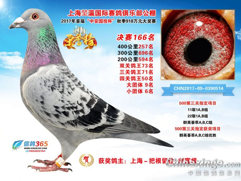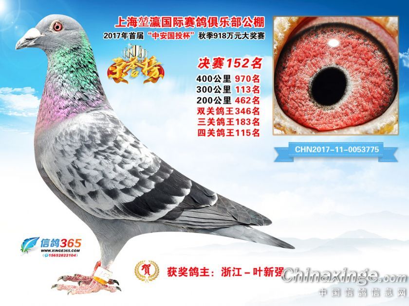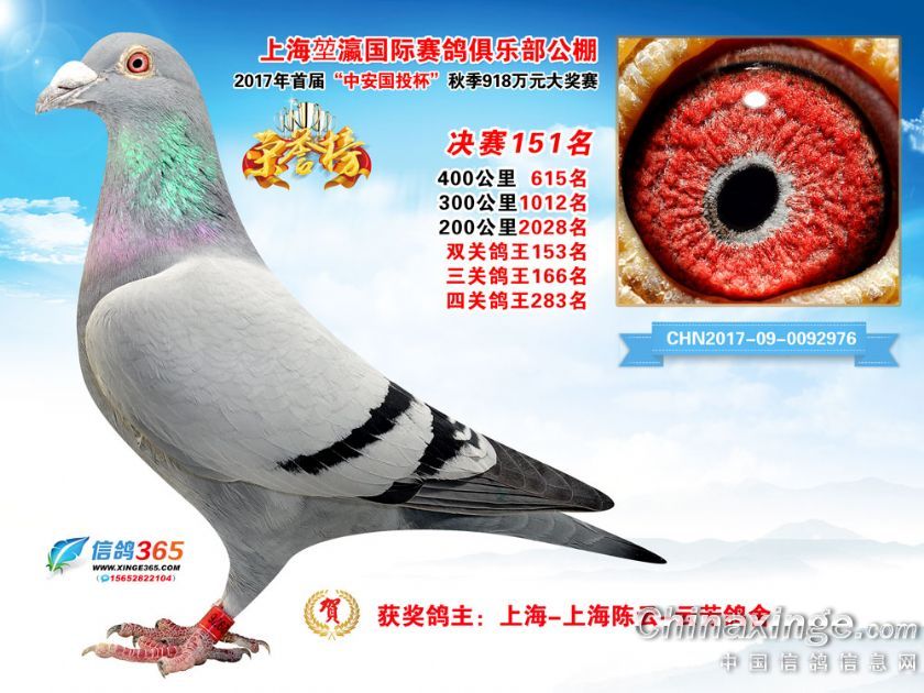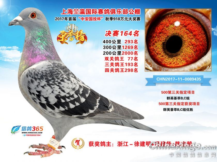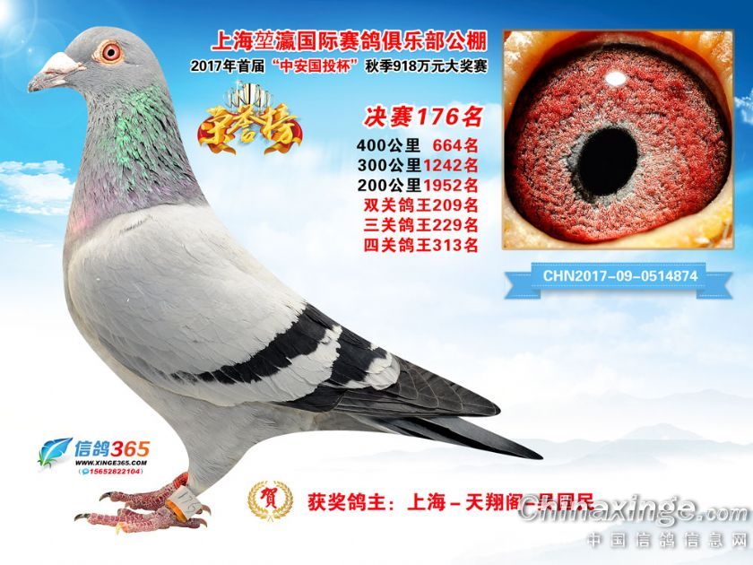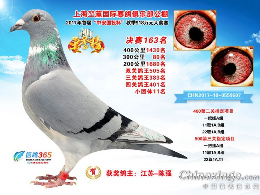 作品说明: 上海堃瀛国际赛鸽俱乐部公棚2017年获奖鸽151-180名