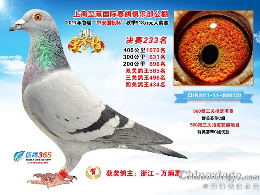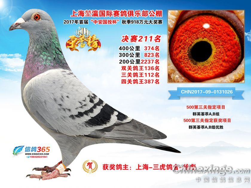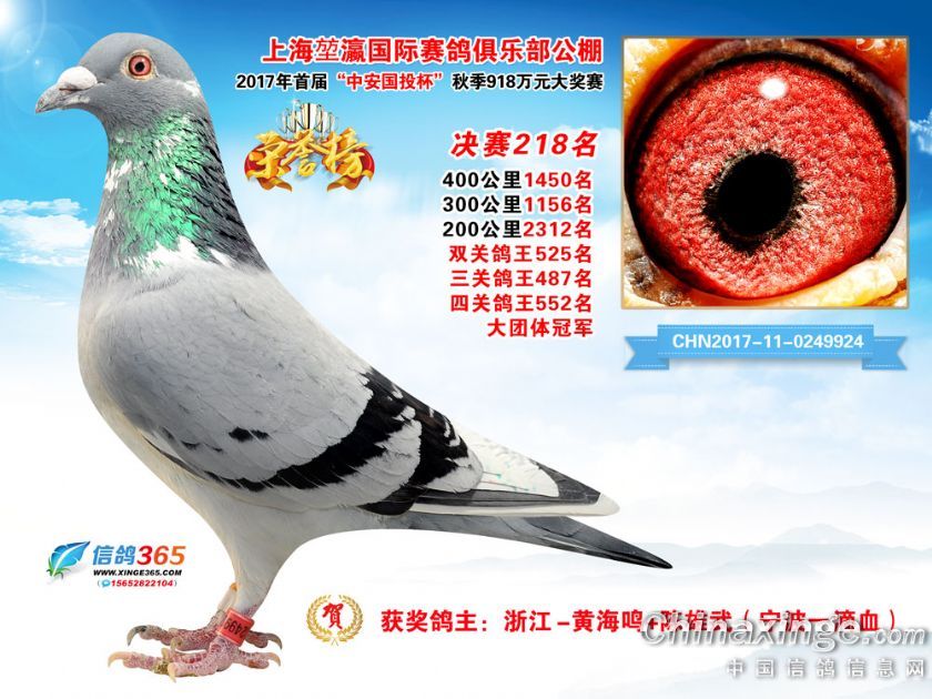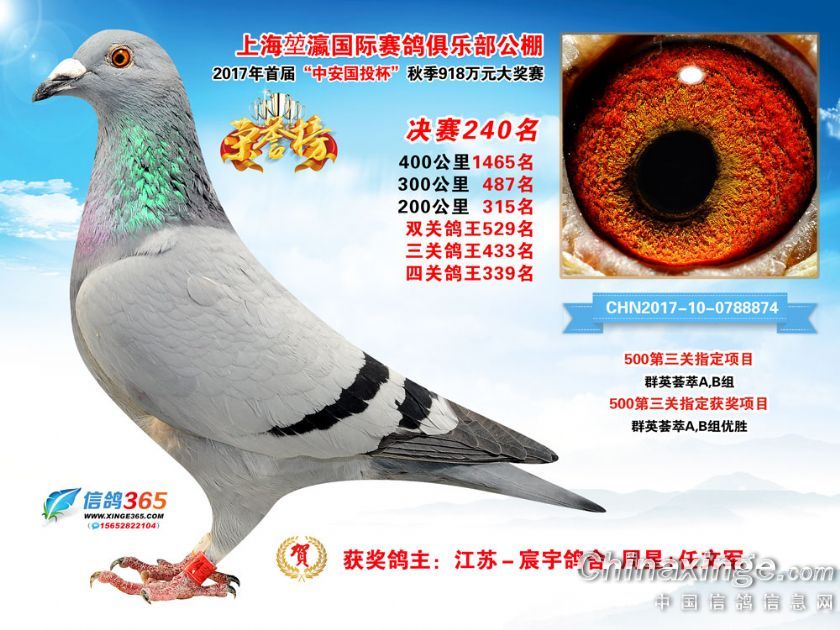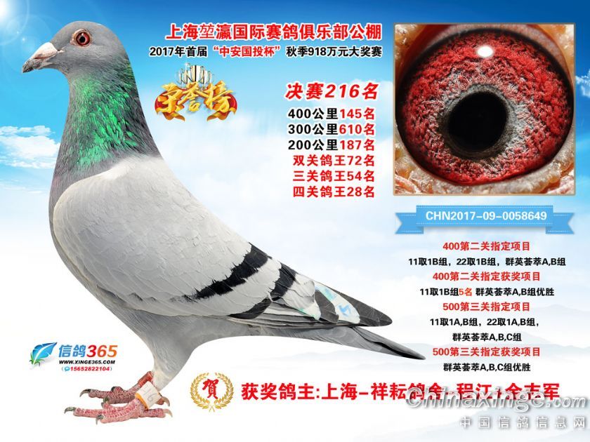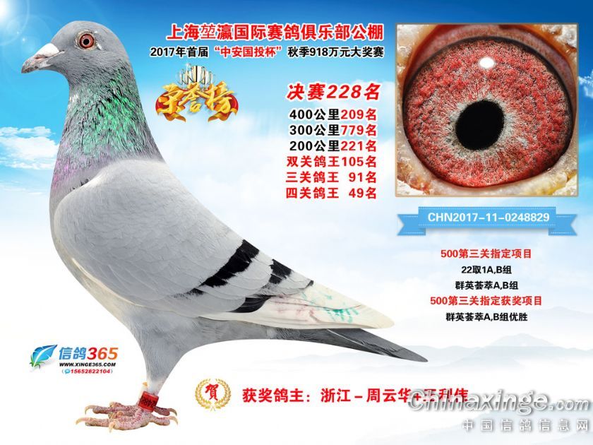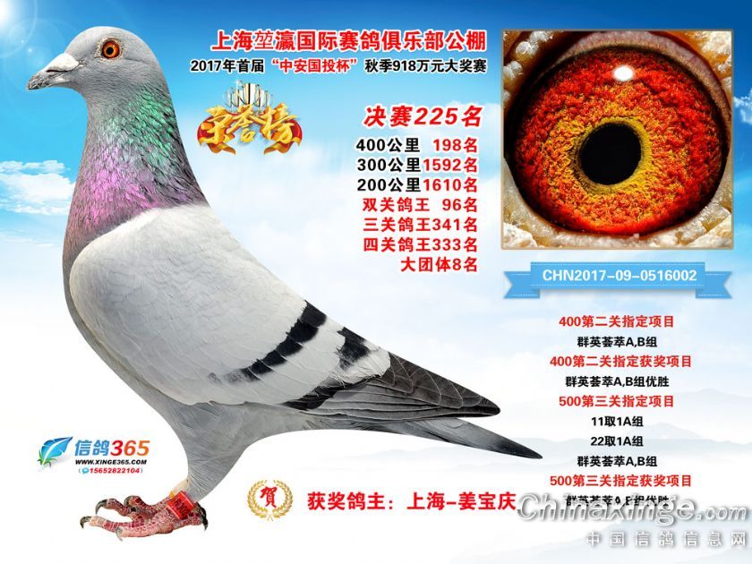 上海堃瀛国际赛鸽俱乐部公棚2017年获奖鸽211-240名