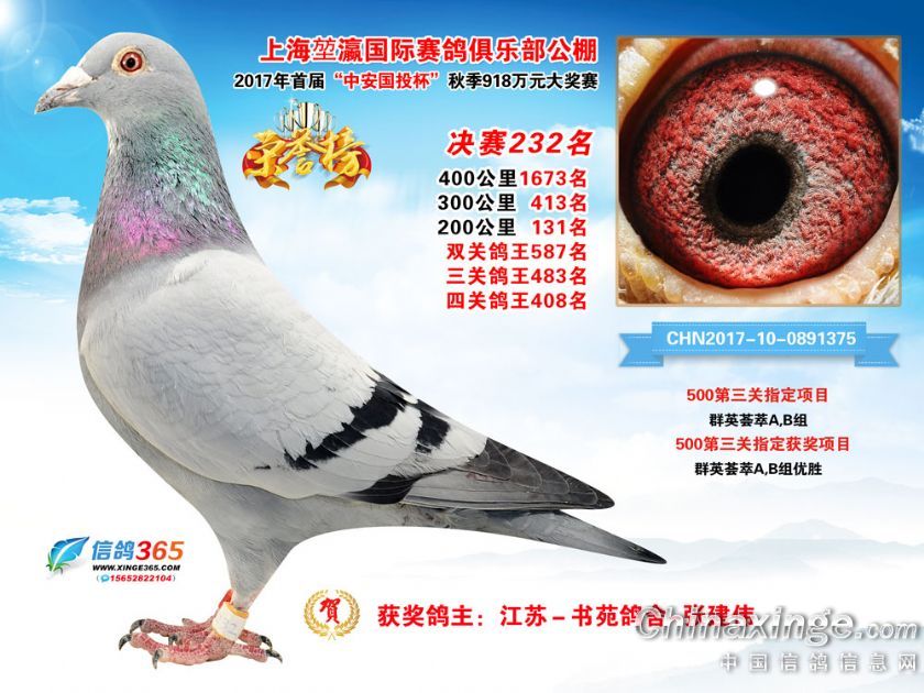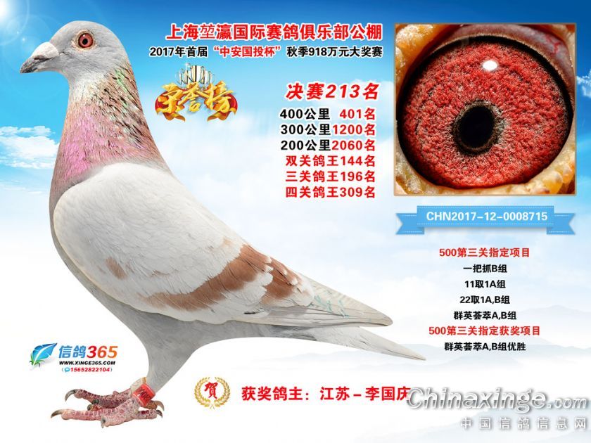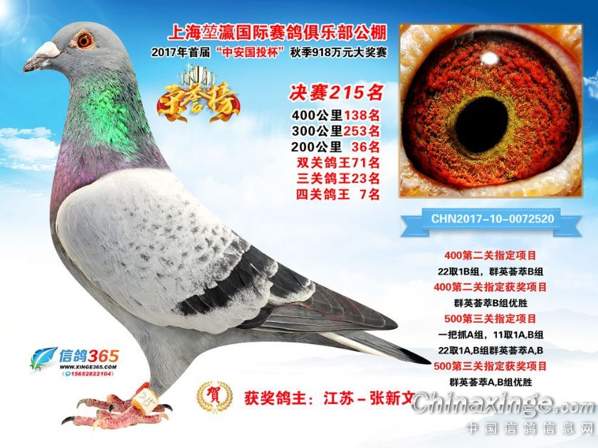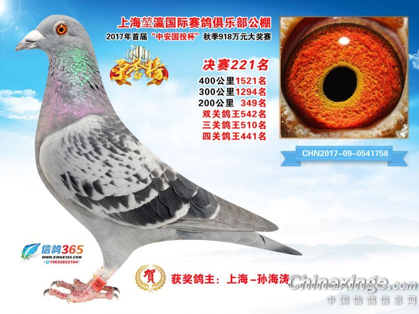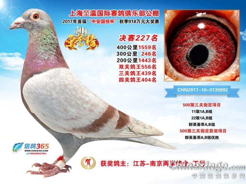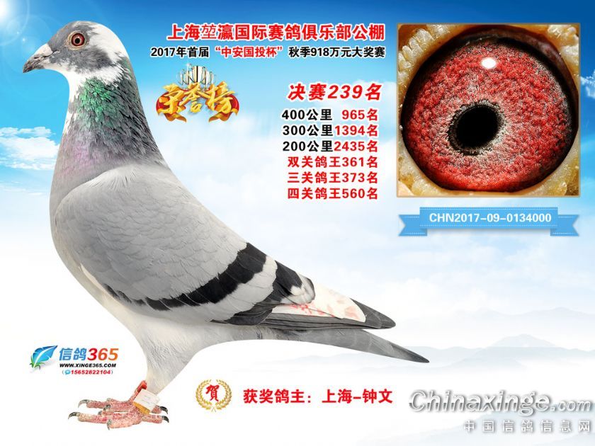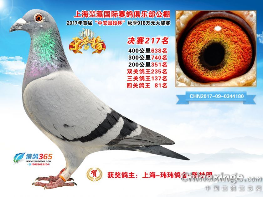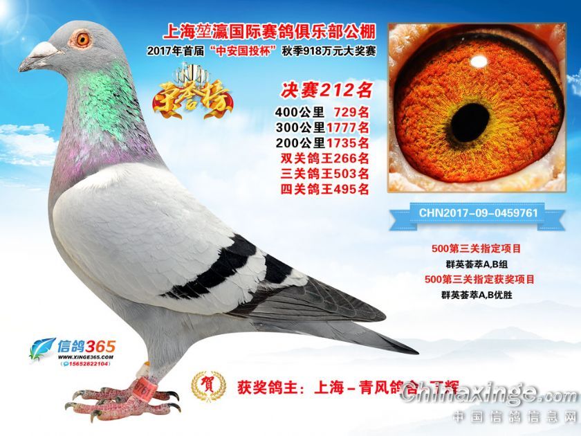 上海堃瀛国际赛鸽俱乐部公棚2017年获奖鸽211-240名