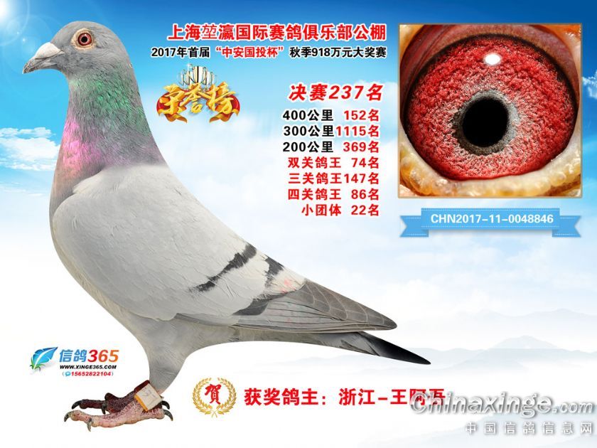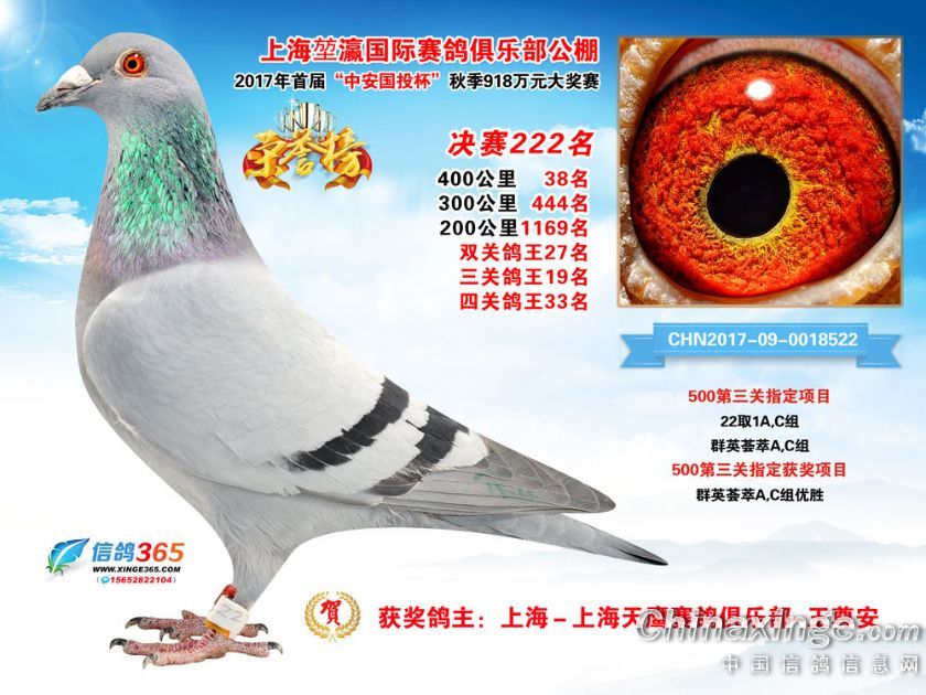 作品说明: 上海堃瀛国际赛鸽俱乐部公棚2017年获奖鸽211-240名