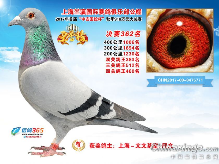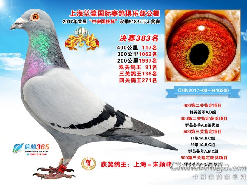 作品说明: 上海堃瀛国际赛鸽俱乐部公棚2017年获奖鸽361-390名