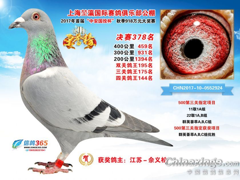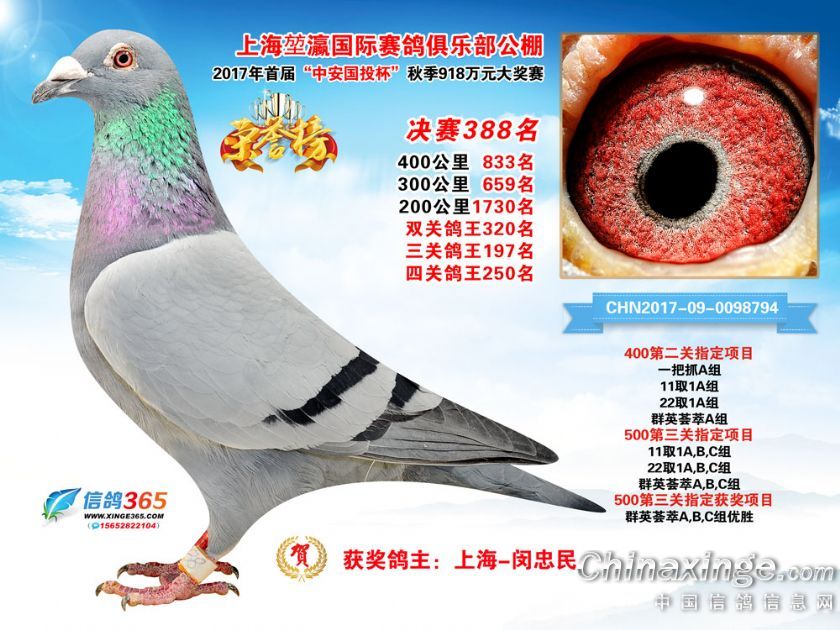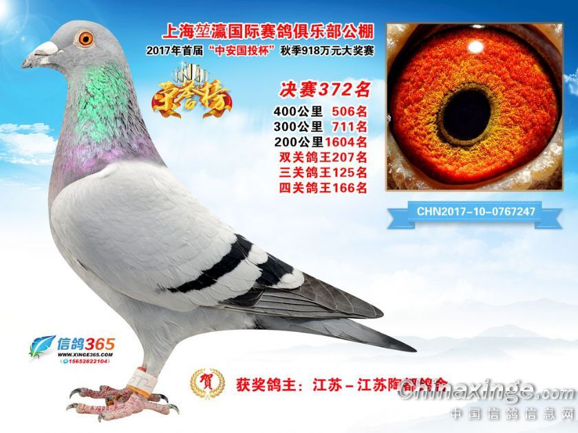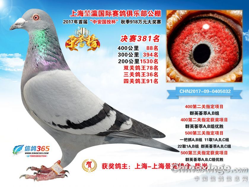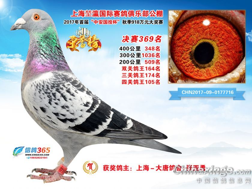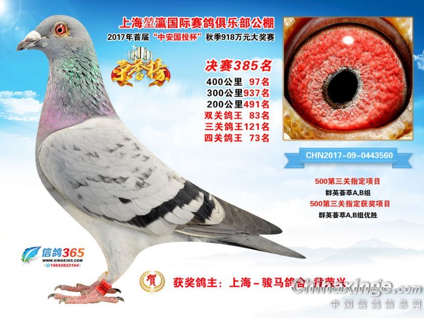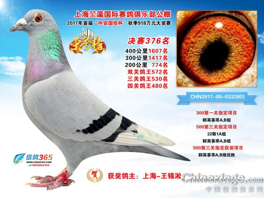 上海堃瀛国际赛鸽俱乐部公棚2017年获奖鸽361-390名